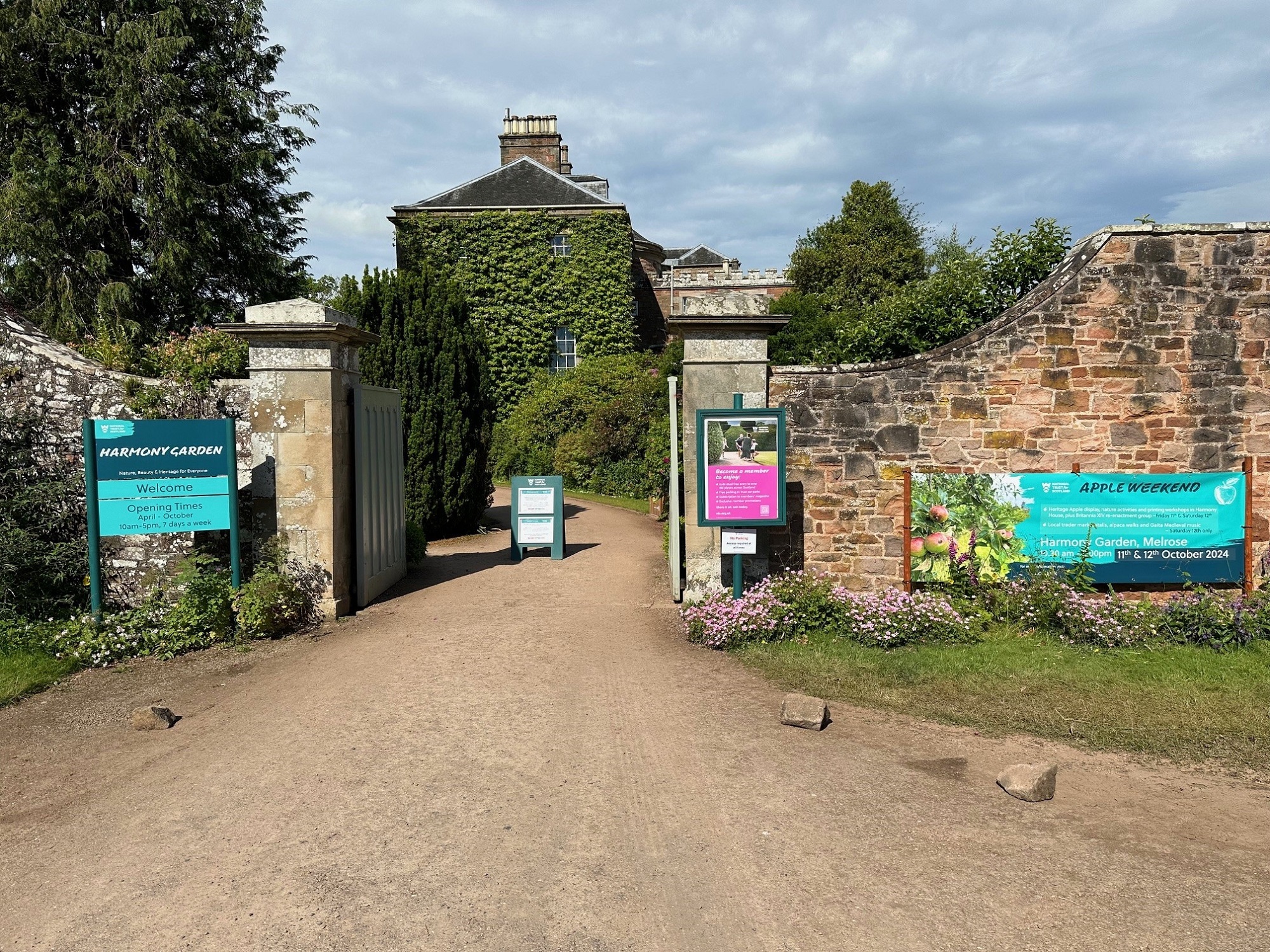 Harmony and its grounds are thought to lie within the western cloister of the 12th-century Melrose Abbey. The garden now comprises approximately 1.5 hectares of ornamental and vegetable garden ground.