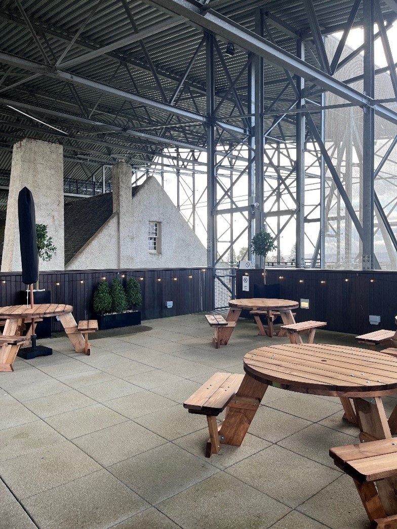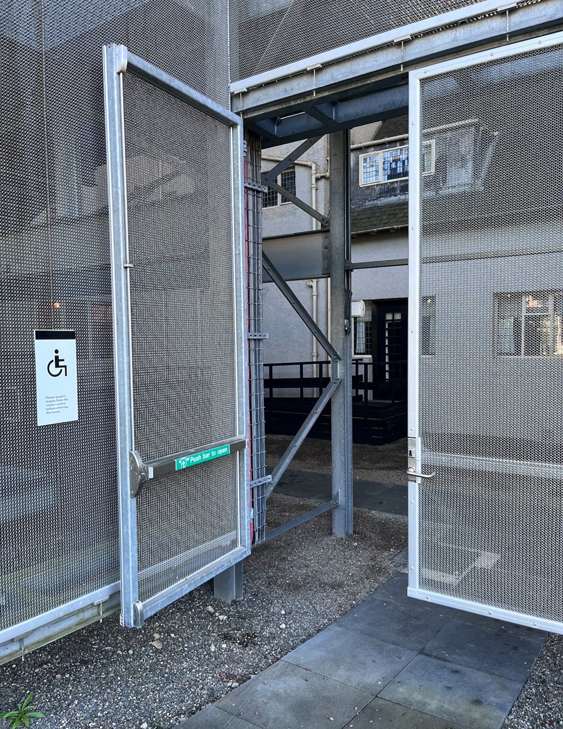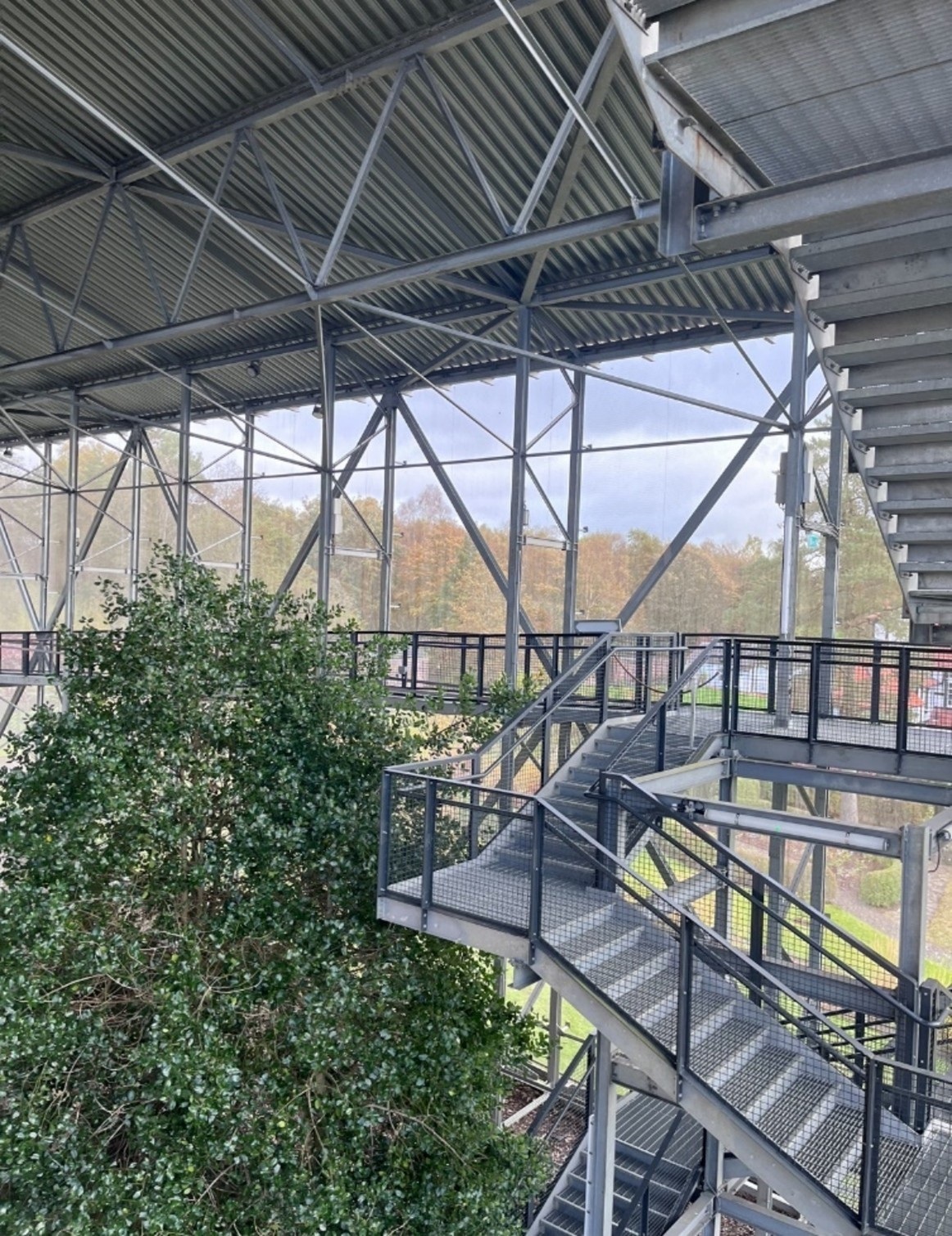 Near the toilets, there is a lift that can be used to access the café and roof terrace, as well as the walkways. These can also be accessed via the stairs beside the lift.