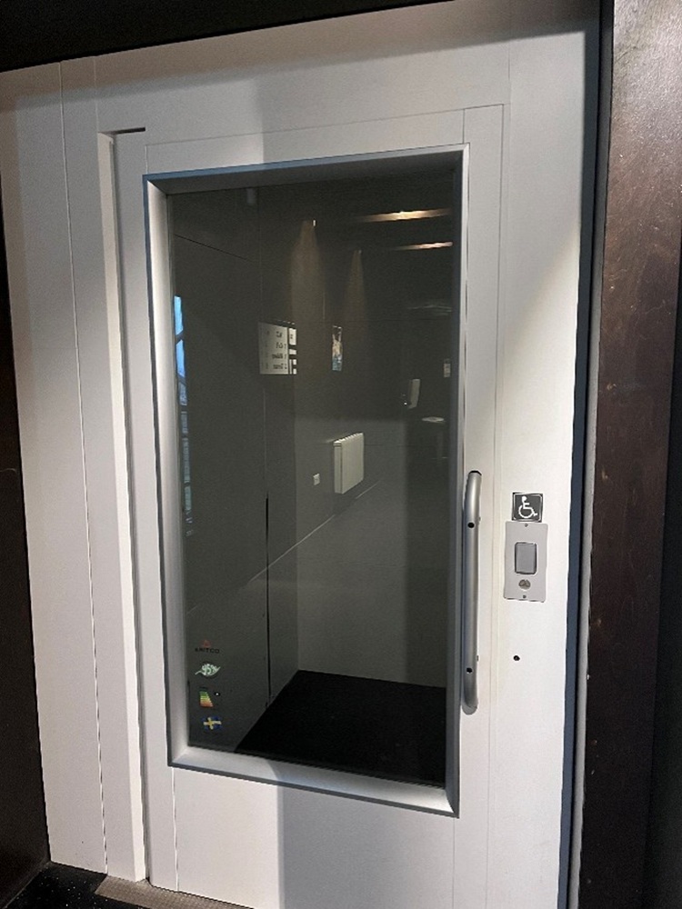 When in the lift, select level 1 for the café and level 2 for the terrace. Hold the button down until the lift stops.