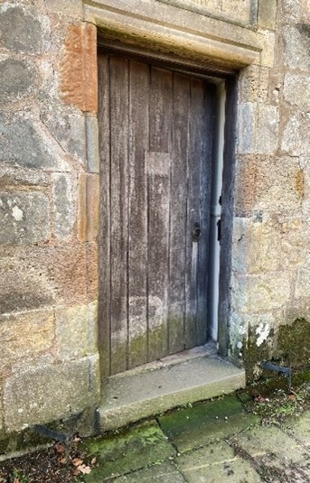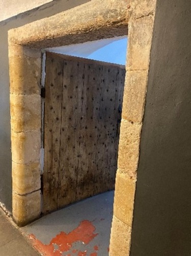- The second seating area is accessed by stepping down 2 stone steps. This access door is 85cm wide.