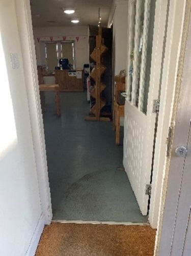 - There is a double front door which is open for visitors, followed by an internal door into the shop.