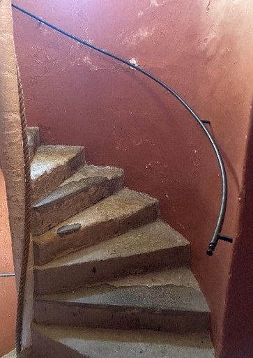 - There are steep spiral staircases (90cm width at narrowest) around the rest of the castle. These have a mixture of fixed and rope handrails.