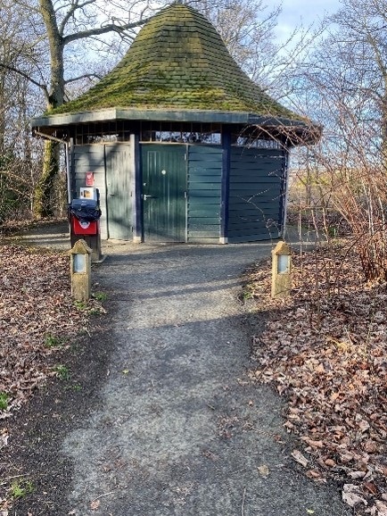 The toilets are located within the grounds in a round building near the disabled car parking area, and adjacent to the woodland walk.