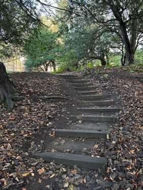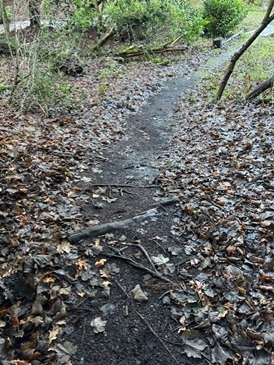 - There is an unsurfaced path throughout the woodland, which can be muddy and slippery. Tree roots are sometimes across the path.