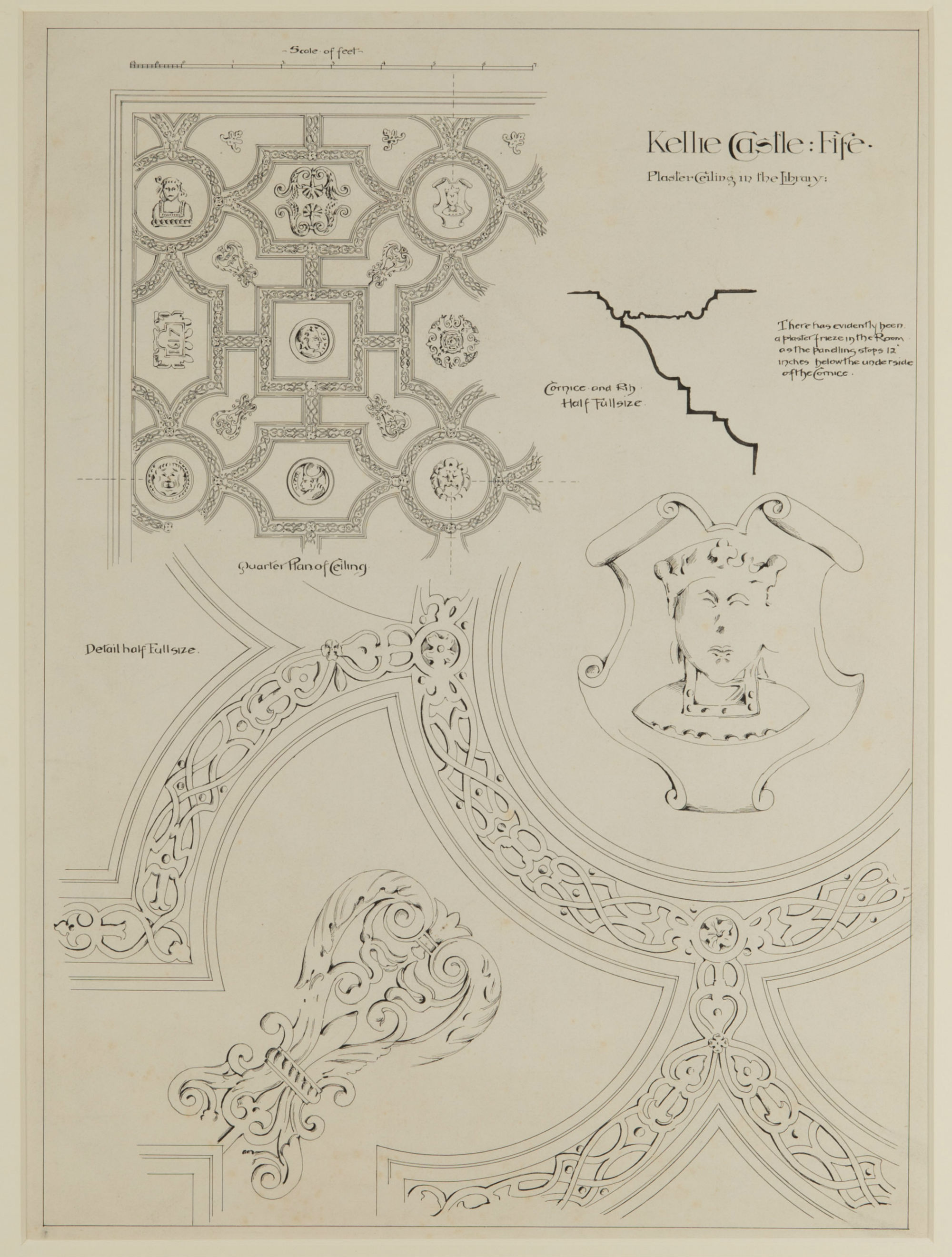 In 1878, James Lorimer, Regius Professor of Public Law at Edinburgh University, rented Kellie Castle, initially as a holiday home and subsequently it became their family home. When they first rented it, the castle was in a state of disrepair and so the family set about restoring it to its full potential, including work on the plaster ceilings.