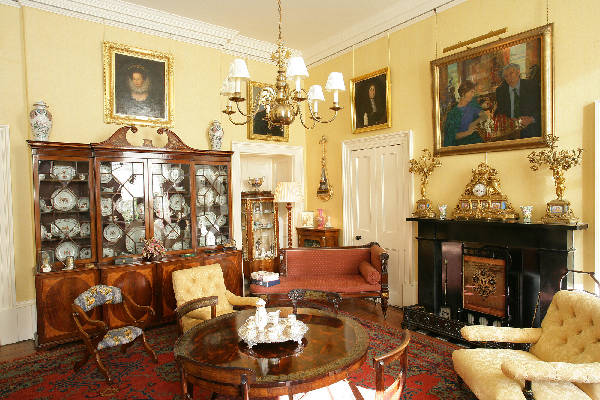 At House of the Binns in West Lothian, there is an armorial service with the arms of Dalyell of the Binns, made around 1773. Painted in famille rose enamels with a border of neoclassical floral festoons, it was made for Sir Robert Dalyell, 4th Baronet (1726–91), on his marriage in 1773 to Elizabeth Graham (d. 1825), daughter of the 4th Laird of Gallingad and 5th of Gartmore. The service was a highlight of the fashionable new dining room, intended to impress his wife’s wealthy family who had trading links to the West Indies.