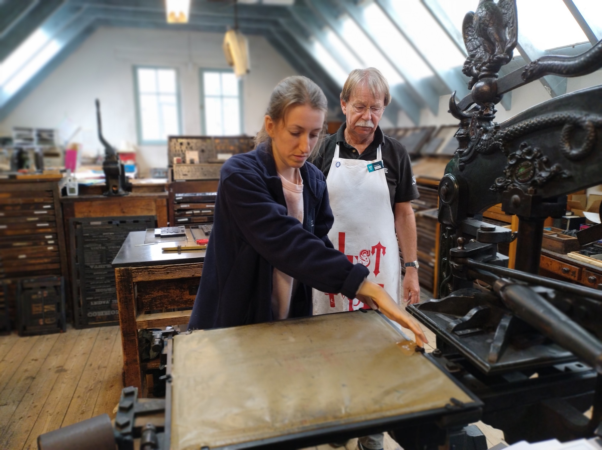 Robert Smail’s Printing Works offers a unique glimpse into the practice of letterpress printing, largely by keeping the traditional skill alive in a way that would not be possible without the working machinery. While places like this offer challenges to conservators, they also offer a tantalising peek into a way of life that seems unfamiliar in our modern world. Keeping these practices going offers education and enjoyment to the visitors and staff who pass through Smail’s doors. The printing presses, as well as the skills and craftsmanship of the compositor and the printers, are important elements of Scotland’s industrial heritage. Together, they keep each other alive in this busy and unique place.