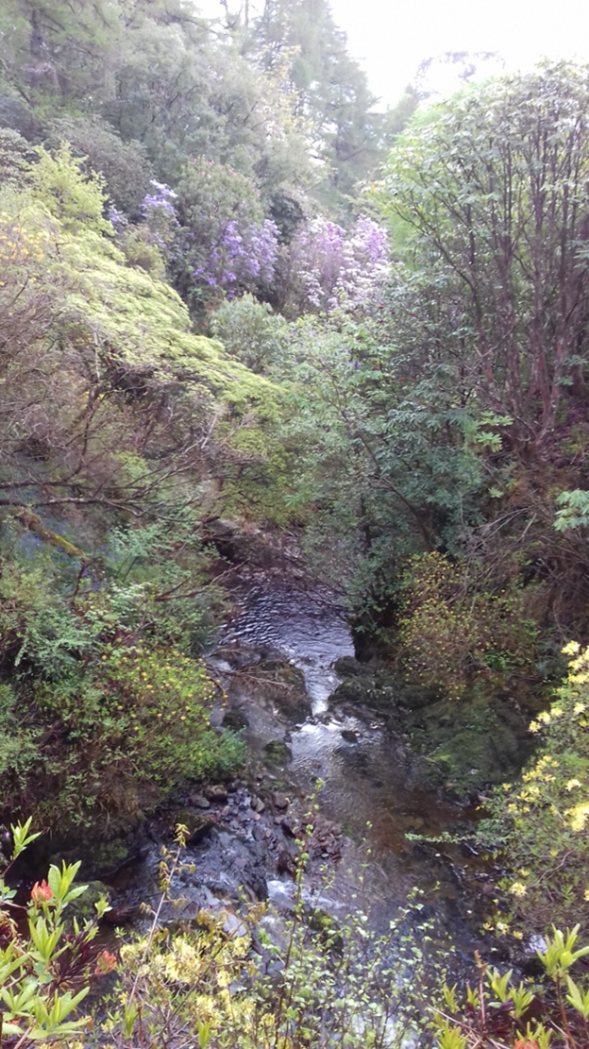 To maintain the naturalistic displays of trees and shrubs, the hillside has to be managed to allow the water to flow down, through and off it into the burn. Water is channelled through a series of ditch networks, which are hand dug and cleared of leaf debris by the gardeners each winter – not a task for the faint hearted!