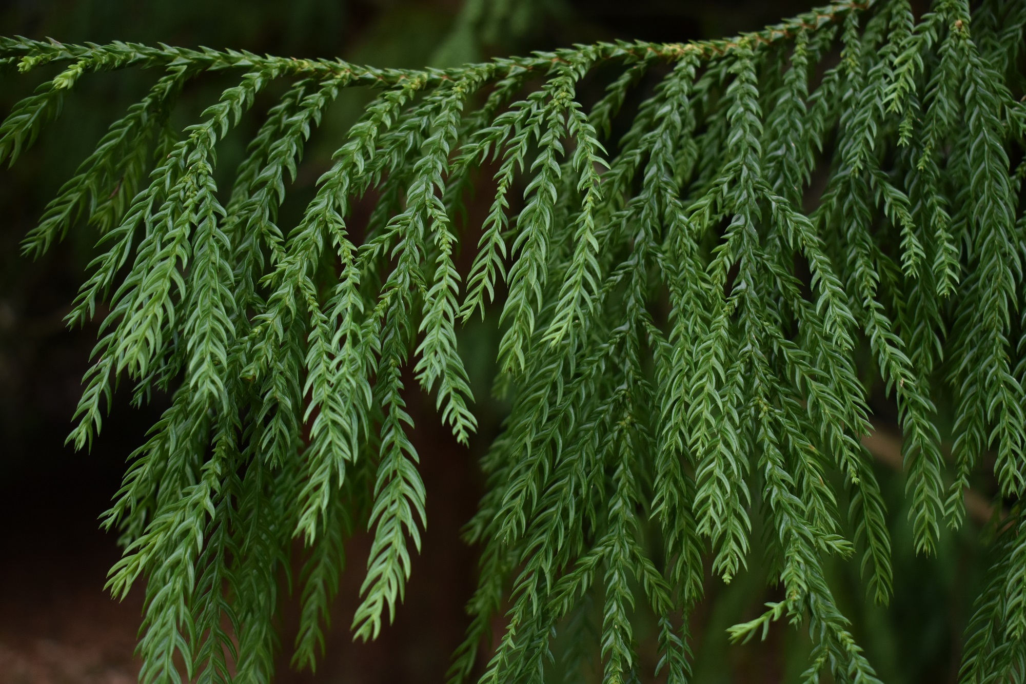 But what about the Huon pine (Lagarostrobos franklinii)? Was it hidden behind the hemlocks, or had it fallen? It was a huge relief to see it that it was still standing and looking good. This tree, which is endemic to Tasmania, is a Country Champion for Scotland for height (7m). In its native land it grows in riparian habitats. I have written about it in a previous blog post ‘Counting the cost’. Throughout the 19th century the Huon pine forests were exploited for their timber. By as early as 1882, they were so depleted that felling was banned, although illegal logging continued. Today the trees are regenerating well in Tasmania but the forests will take centuries to return to their original splendour because the trees are slow growing. The International Dendrology Society mentions our Crathes specimen as an ‘enigma’ for growing so well so far north and east in Britain.