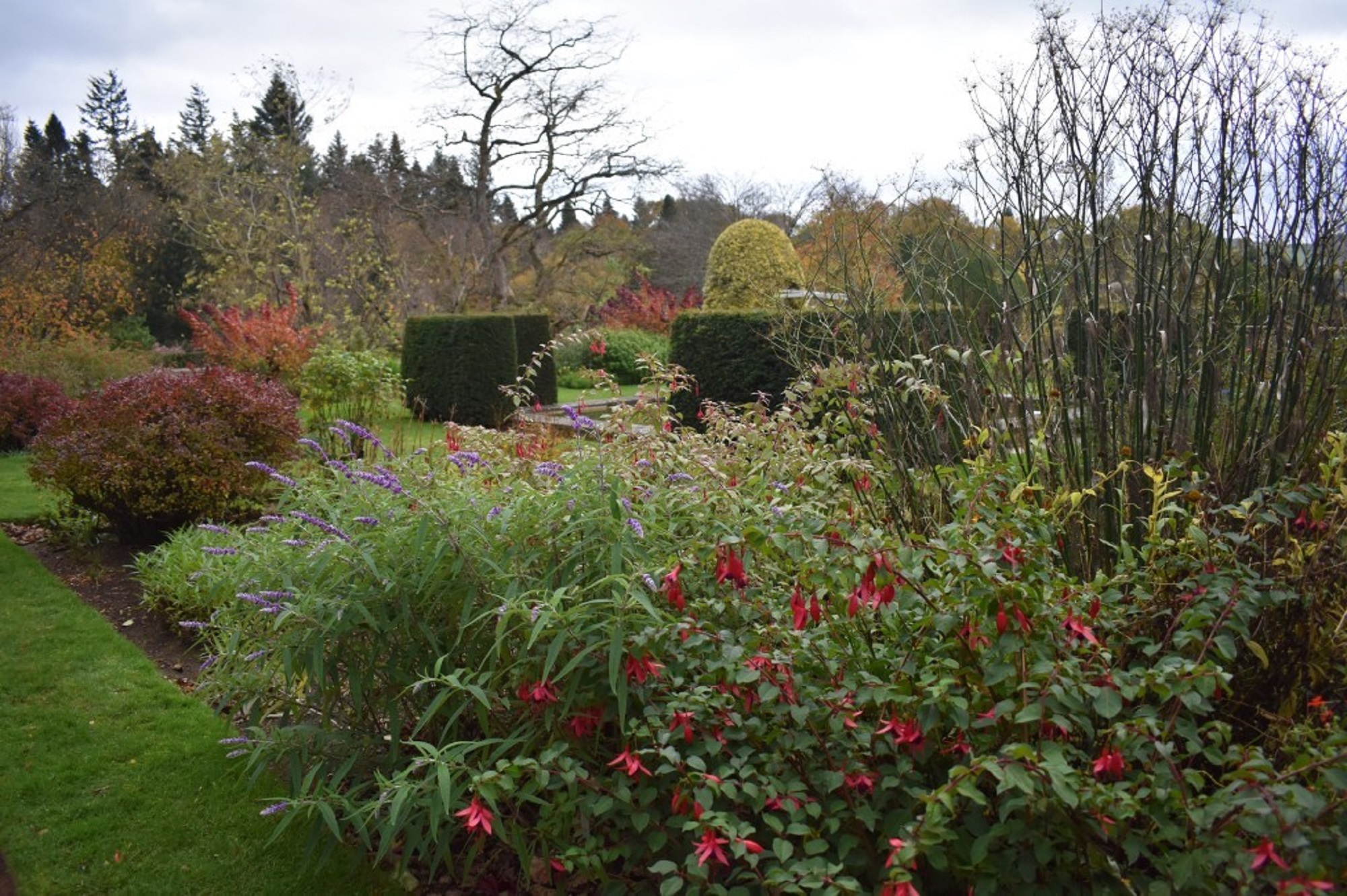 There are not many folk about on this gloomy day, but I see volunteer Jenny tidying and weeding in the Camel Garden. She is quite happy working away by herself, savouring the peace of the garden that gives her a break from a busy life.