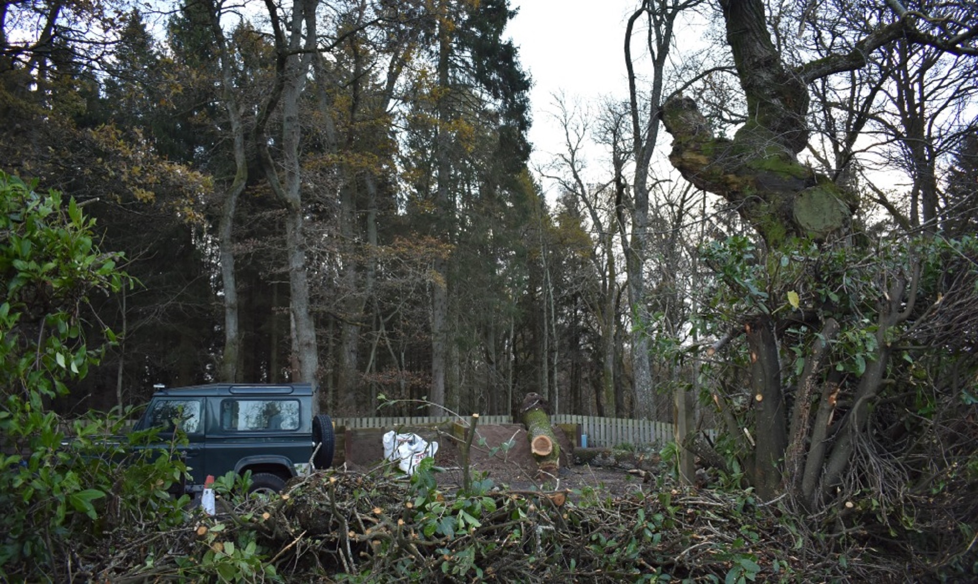 Dangerous hanging branches have been removed from the main drive and the policies immediate to the castle, but the trails remain closed. Various contractors will be helping with work on the trails, but they have many demands to meet across the North-East just now and the commercial forestry damage will have to wait.