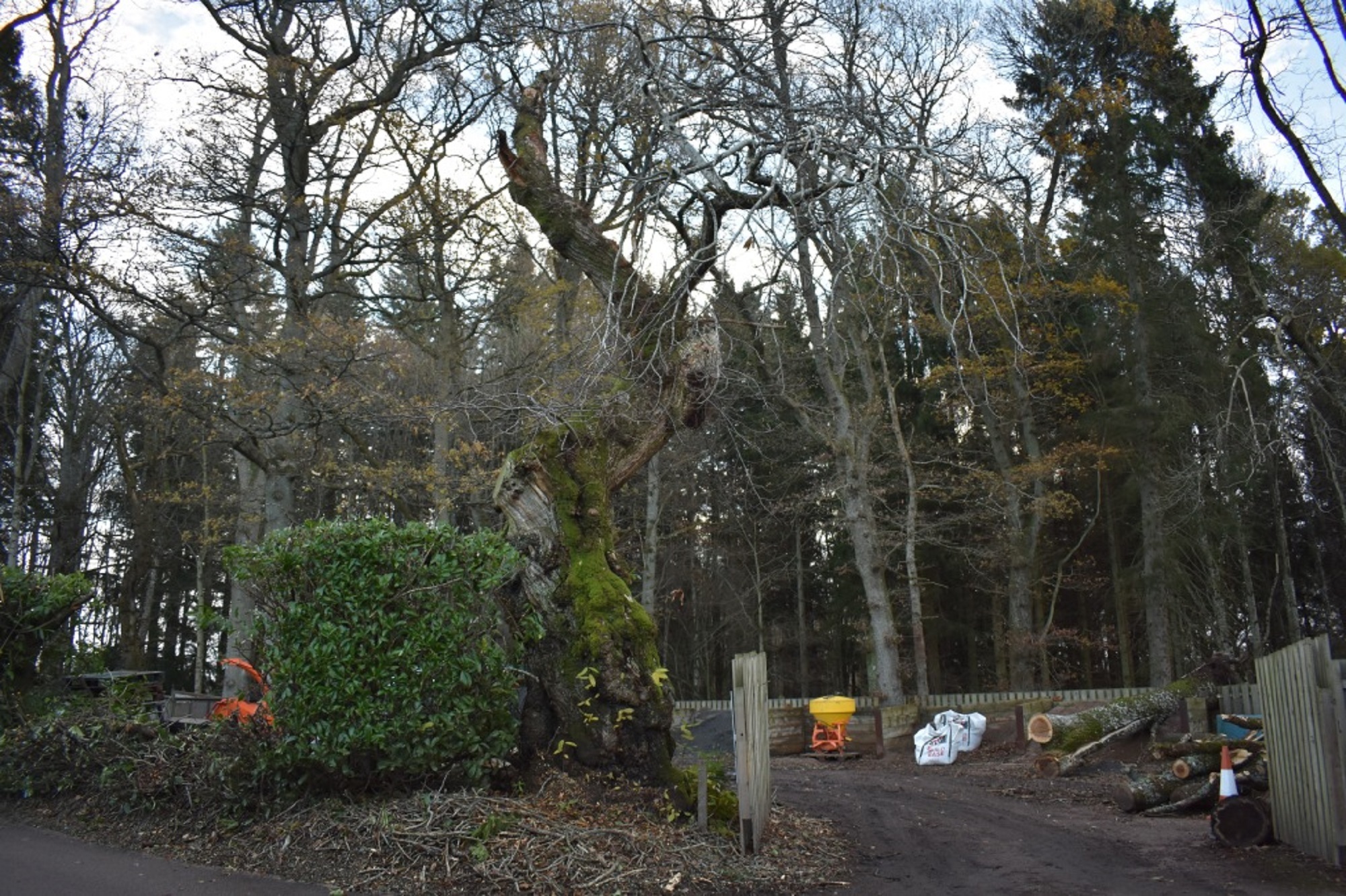 Six years ago, Storm Frank devastated Deeside because of flooding, but Arwen brought the worst winds the north-east of Scotland has experienced since 1953. Crathes suffered terribly then, not only by the dramatic change to its landscape but also by losing valuable income. [1] The 1987 gale was also destructive when, as in 1953 and 2021, the wind came from the north-east. The prevailing wind at Crathes comes from the south-west, which strengthens the tree roots on that side but leaves the other side more vulnerable. Torphins, despite its abundance of tall trees, got off lightly in Storm Arwen compared to many places. Haddo Country Park was devastated, with maybe as many as 100,000 trees lost, as was the John Muir Country Park by Dunbar over 100 miles to the south. Crathes has not escaped the carnage, but it has not been as badly hit as it was in the 1953 gale.