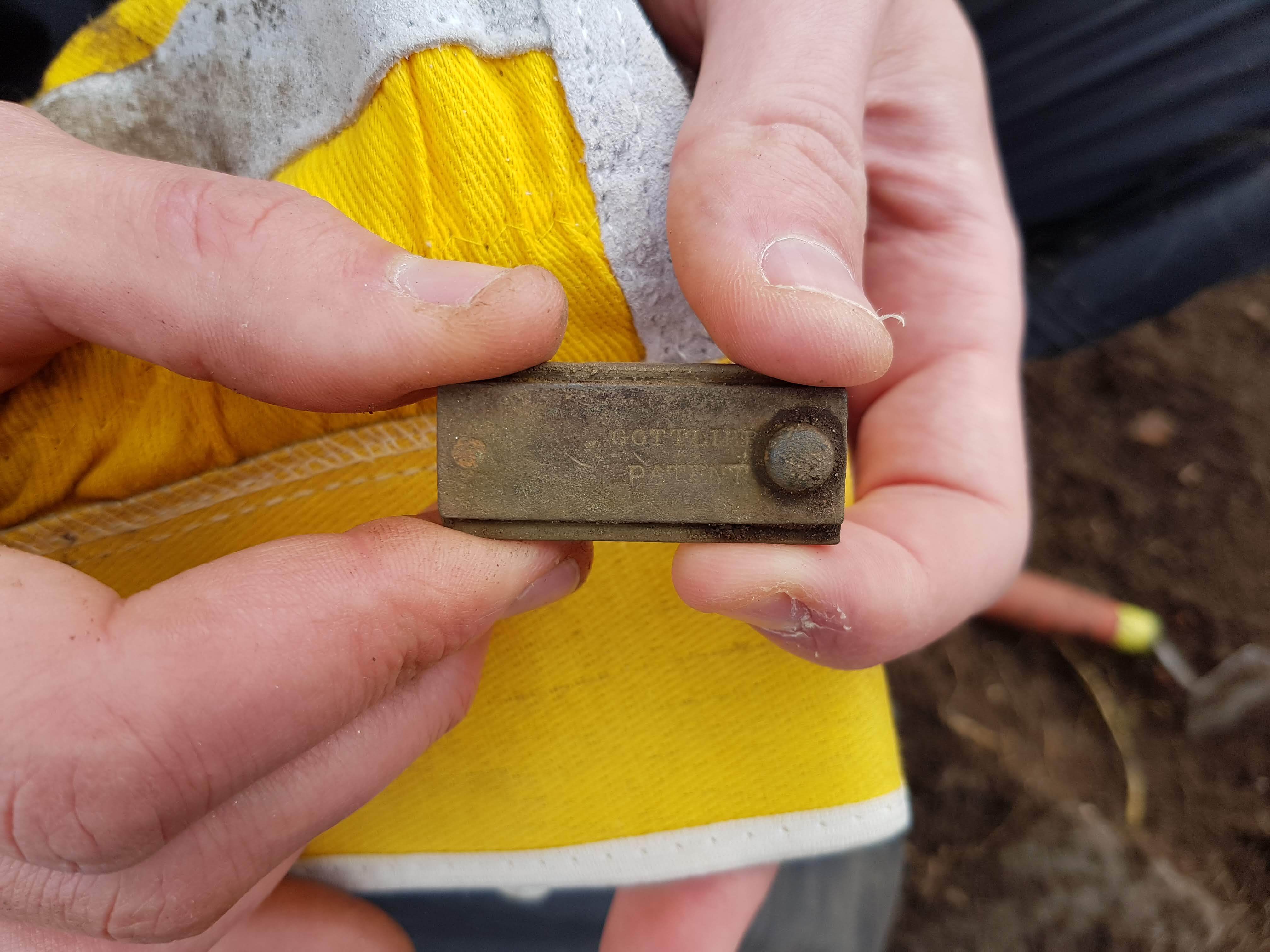 At this point in the process, the distilled alcohol needed to be monitored by the on-site Excise Officer to prevent illegal diversion. The vats were raised off the ground for easy inspection underneath and were kept locked. The discovery of a brass slider from a padlock in this area supports this idea. It is marked ‘Gottlieb Patent’, indicating it was a type of padlock patented in 1829 for use by the Excise Officer.