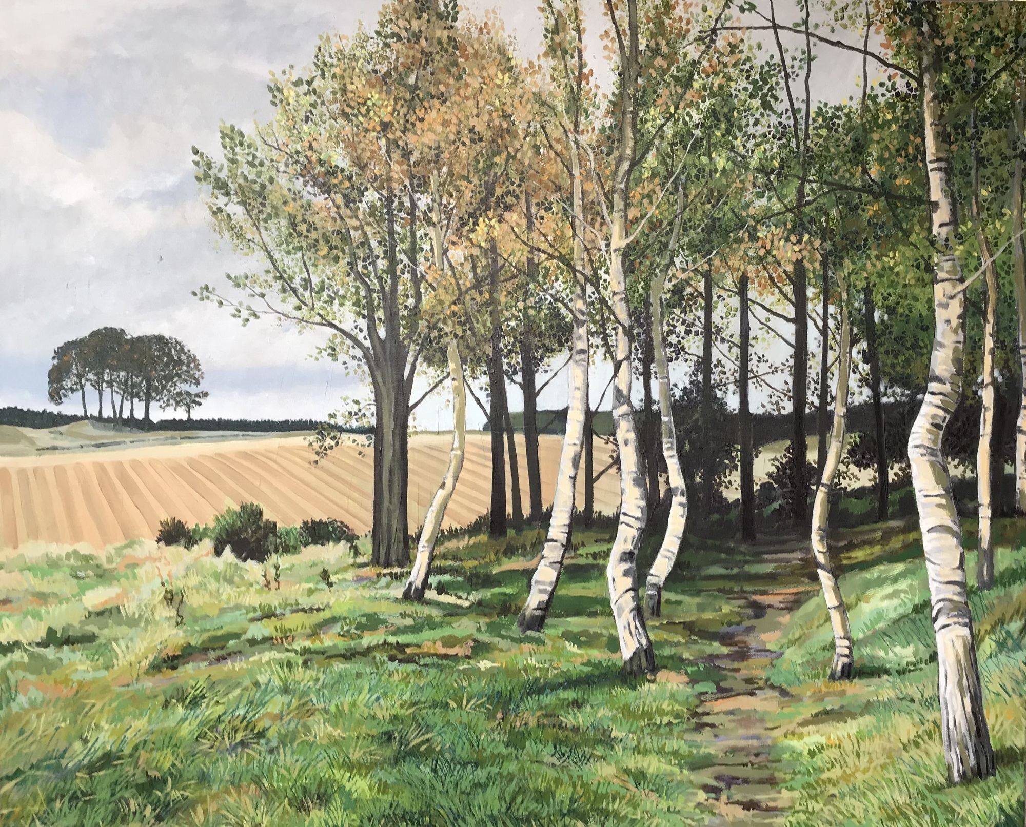 Her work captures the effect of sunlight and shadows through all the seasons. When painting ‘en plein air’, Pat’s preferred mediums are pen and watercolour or acrylics. In her studio in Glenrothes, she paints with oils. Pat pushes fine art boundaries by also ‘painting’ with repurposed or dyed textiles and stitch. This gives another dimension to the pictures, and they are often further embellished with found objects or a subtle highlight of beads.