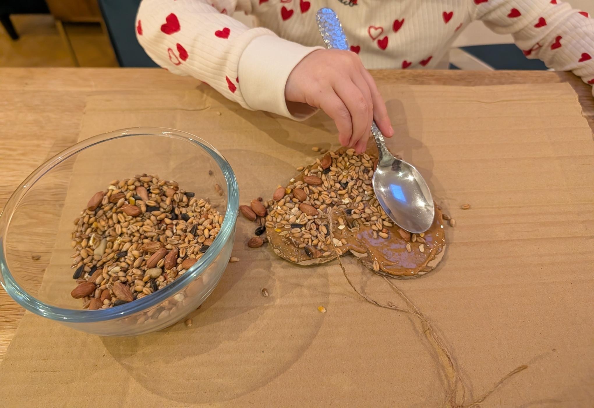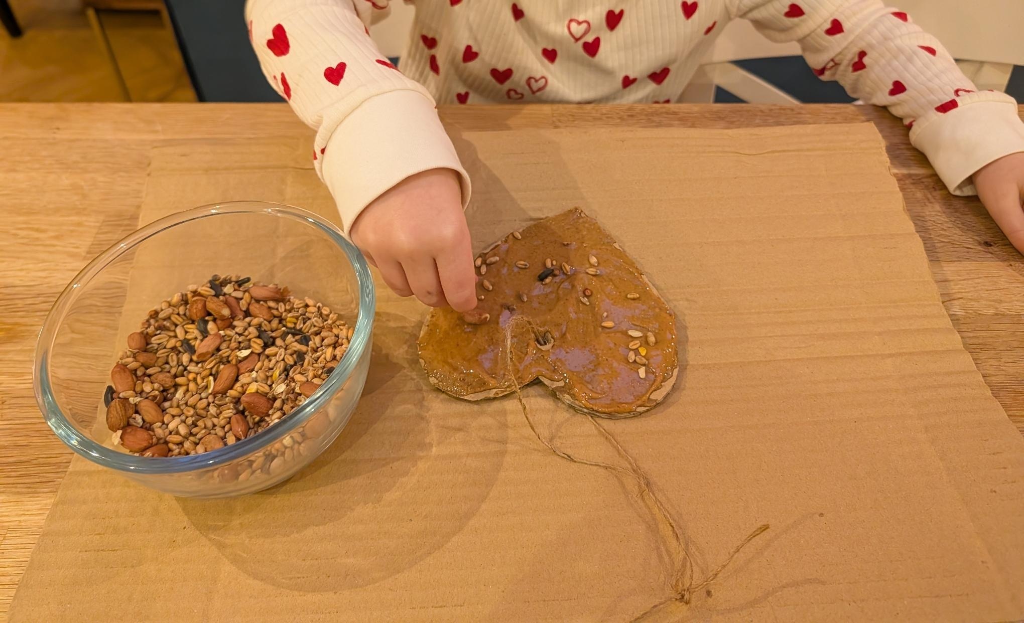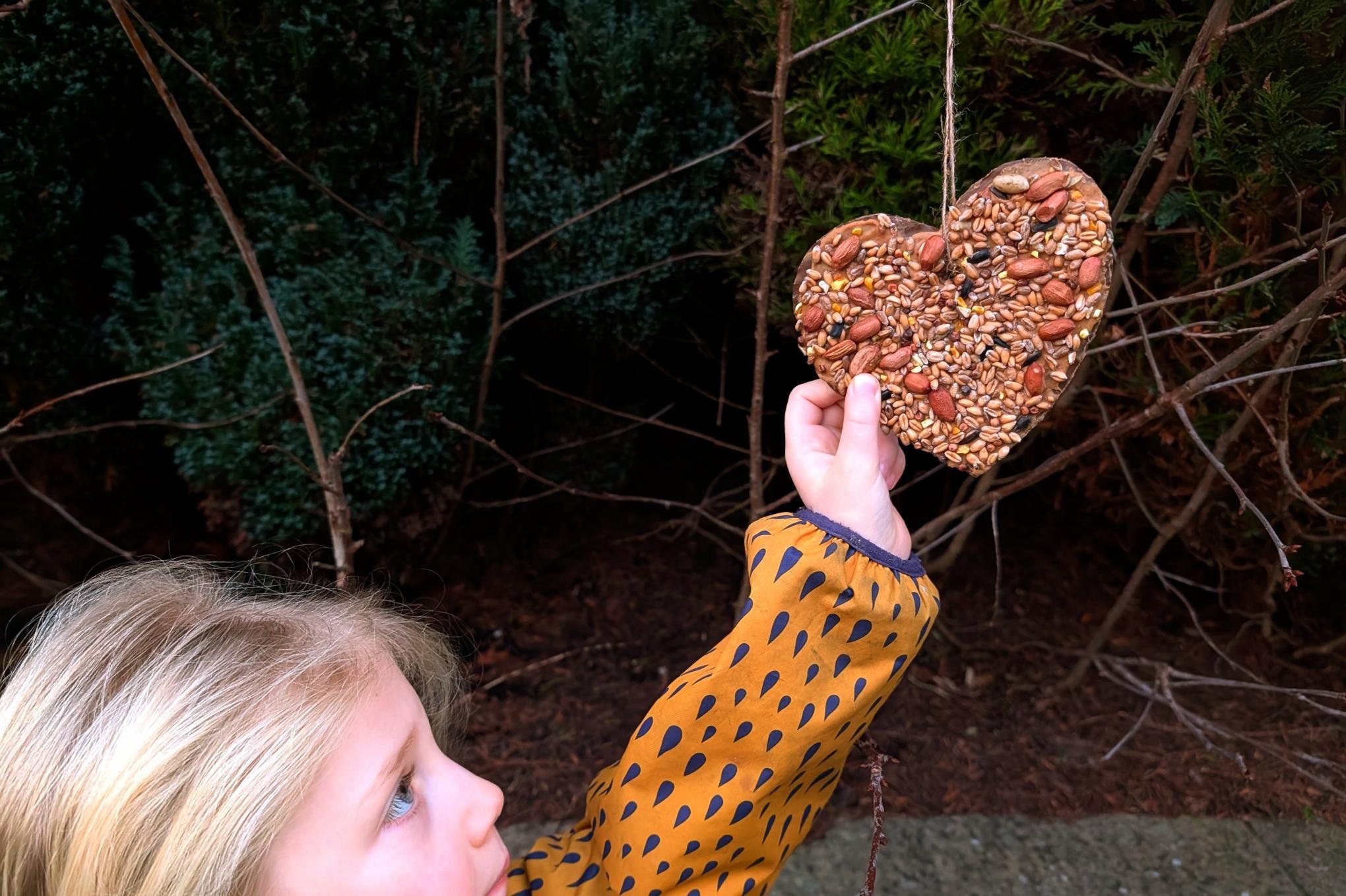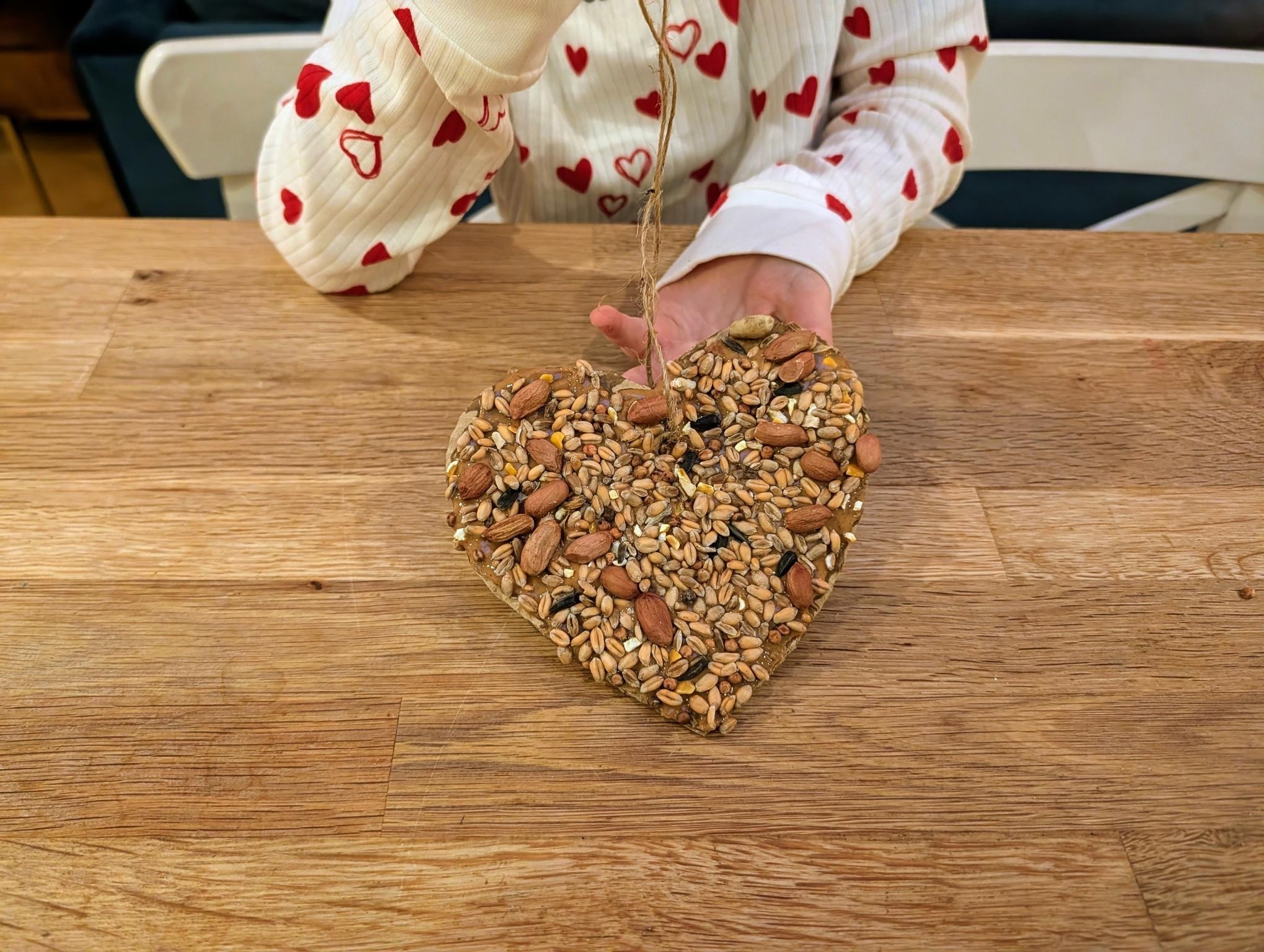 Family craft: heart-shaped bird feeder