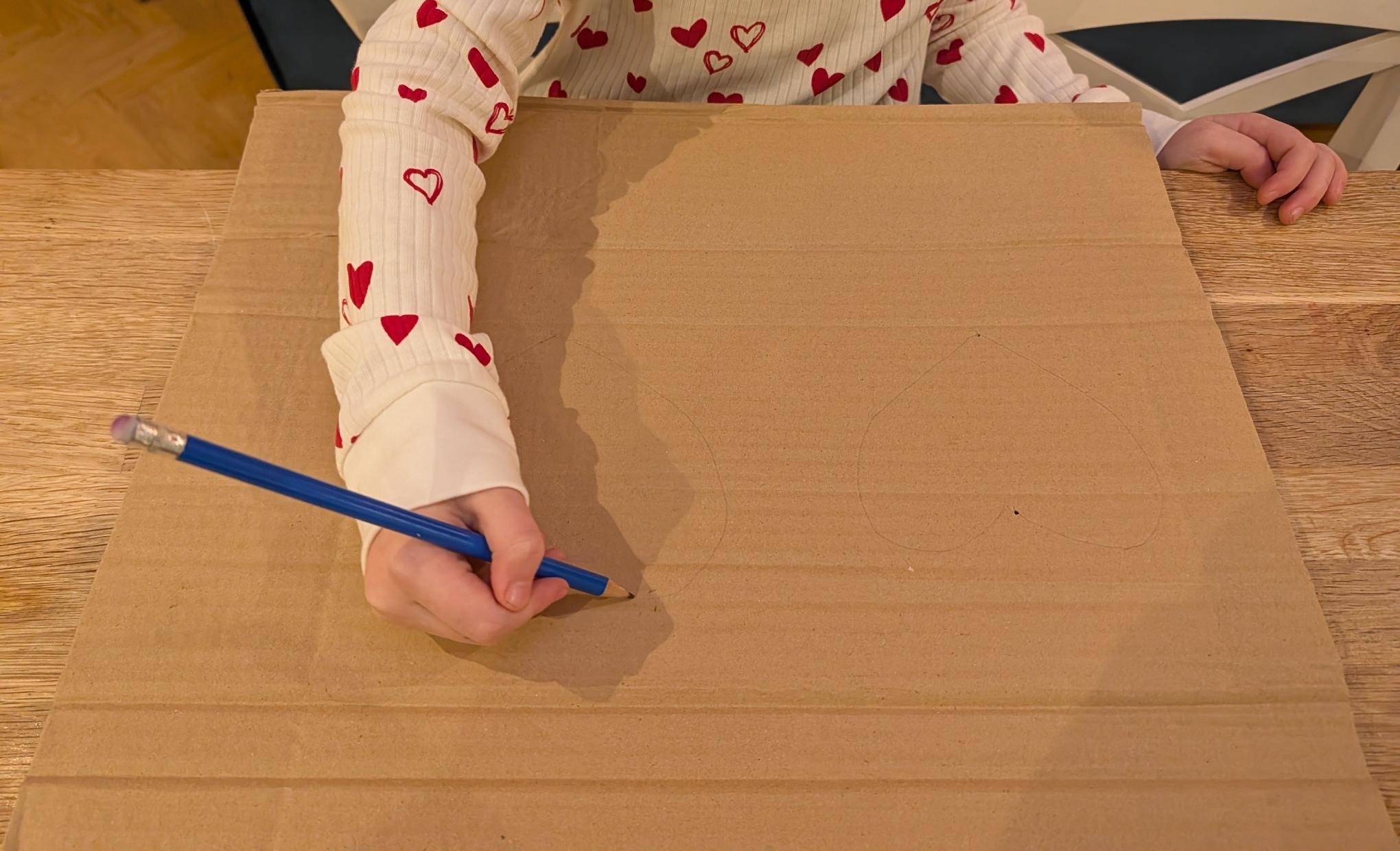 Take your pencil and draw a heart shape on your piece of cardboard.