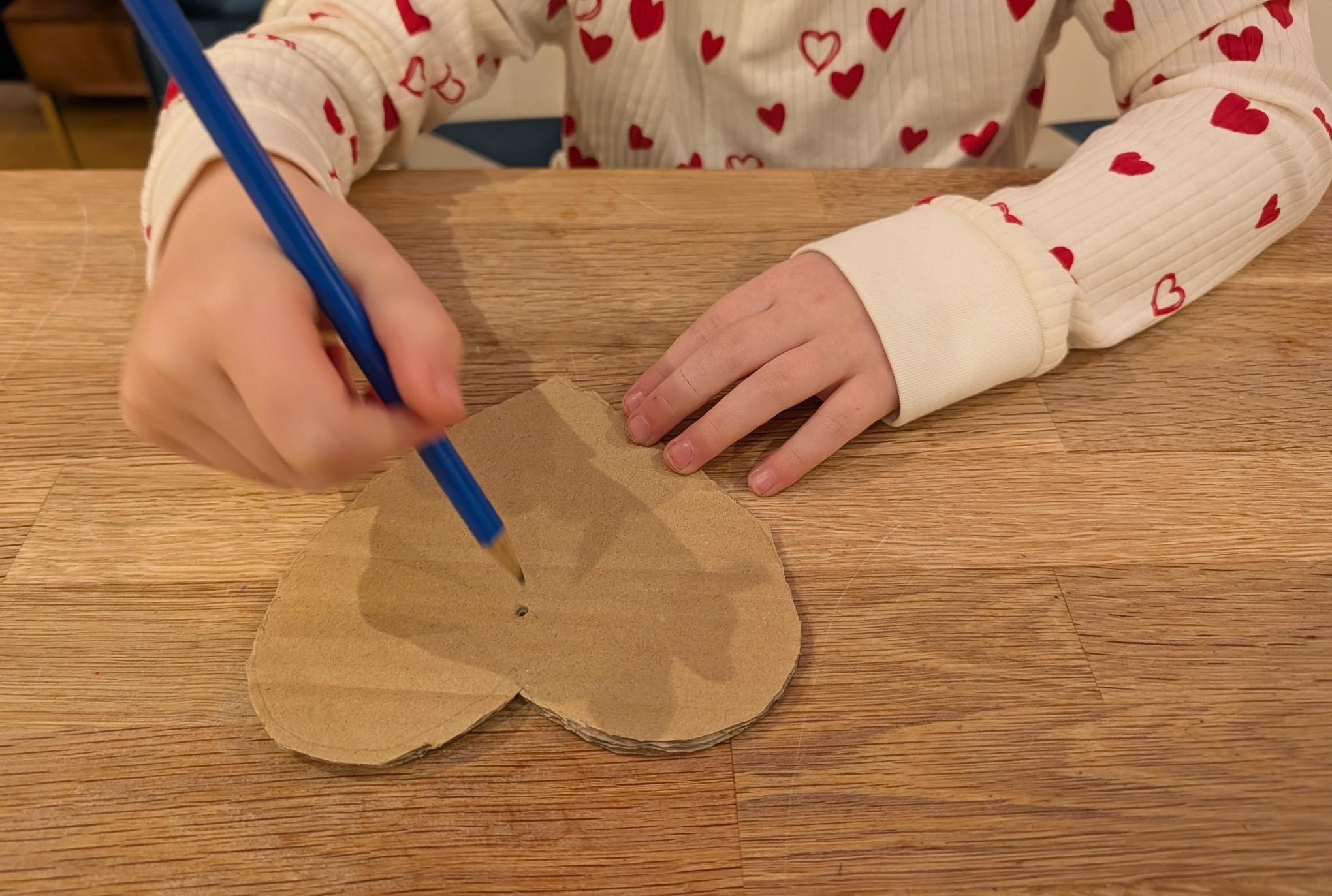 Use your pencil to poke a hole in the top of the heart.