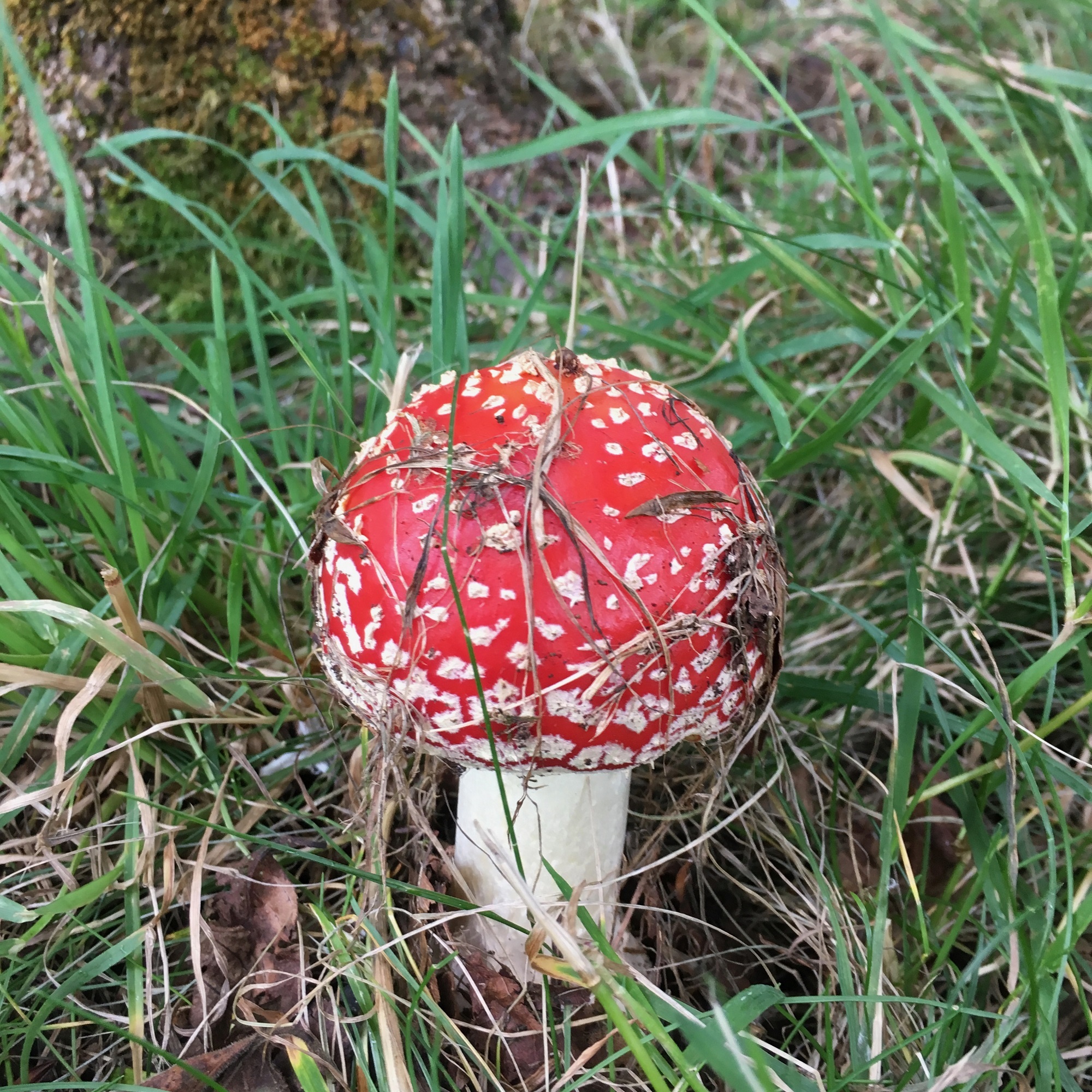 A feature of a visit to Inverewe Garden this autumn has been the bumper crop of fruit bodies of fungi: the many mushrooms and toadstools perhaps most obviously seen under the birch trees surrounding the car park, but also found throughout the gardens and alongside the woodland trail. They will continue to appear well into November, though the species found then will be different to the ones that we are seeing now, just like the succession of summer to late-autumn flowering in the plants in the garden.