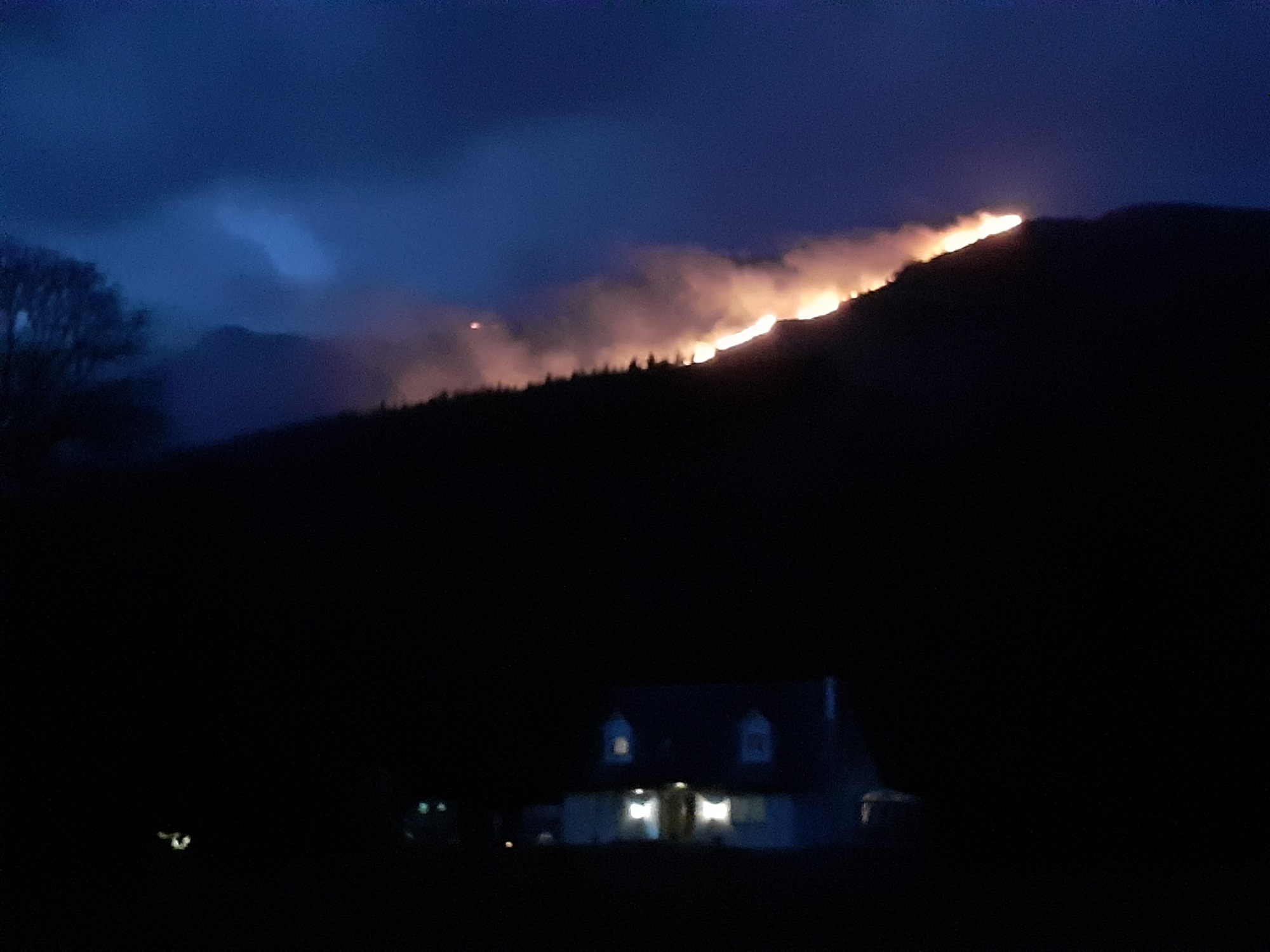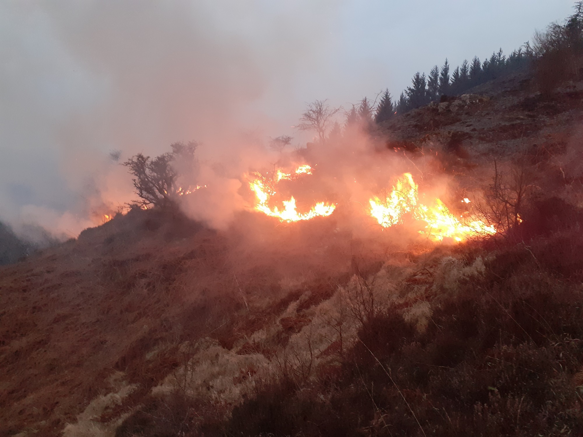 Eight personnel from SFRS got up to the fire at around 5pm and started to try and make an impact on the southern edge of it, but the large quantity of dry material on the slope, particularly dead bracken and grasses, made for too fierce a fire to make any headway with beaters (a wildfire firefighting tool, used for open areas such as grass fires) alone.