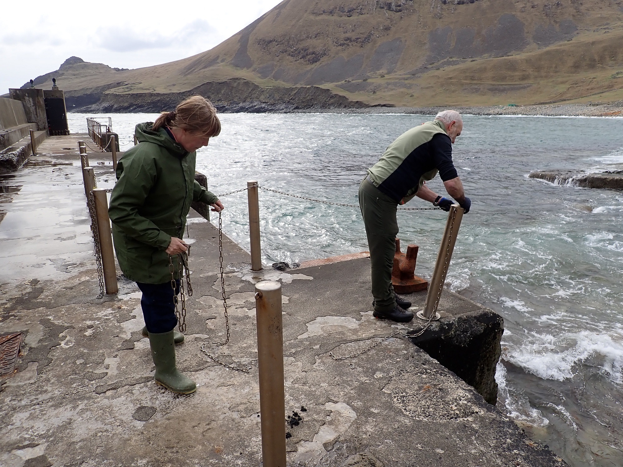 The priority for me when I arrived on St Kilda was to get the jetty scrubbed and made safe for visitors. Over the winter, algae grows thickly on all the steps and platforms, creating a treacherous slipping hazard. There is no quick solution … just perseverance and continued attention throughout the season. However, I’ve asked for a new brush this year! My grateful thanks go to Jonathan Grant (ranger for Mingulay, Pabbay & Berneray) for coming out to assist with opening up for the season.