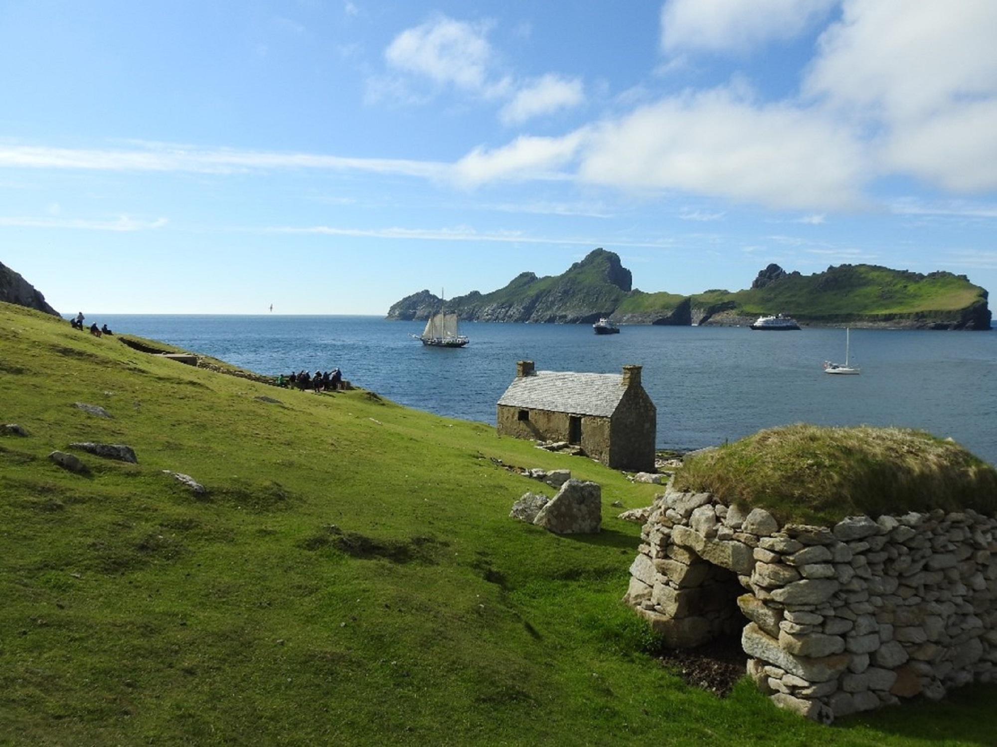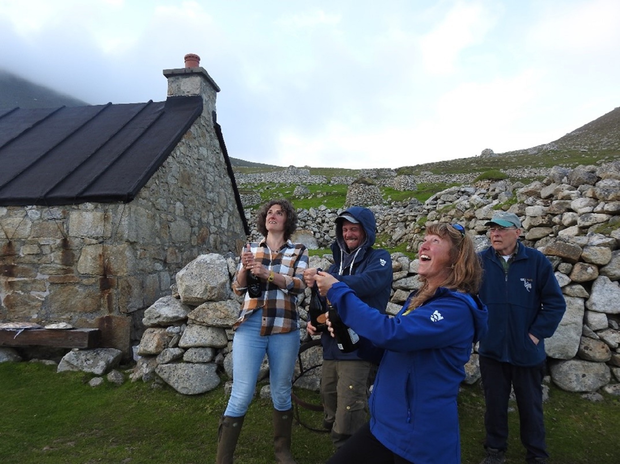 Back on St Kilda, we have now swung into full season for visitors, wildlife and restoration work. We have had great help from volunteers, and we have welcomed film crews, photographers, scientists, researchers, craftspeople, campers and day visitors. In June, the whole island participated in the Queen’s Platinum Jubilee celebrations with a fantastic beacon at the top of an extremely windy Ruibhal. On the next day, we had probably the westernmost street party and barbecue in the UK, with everyone enjoying the sunshine and the chance to relax.