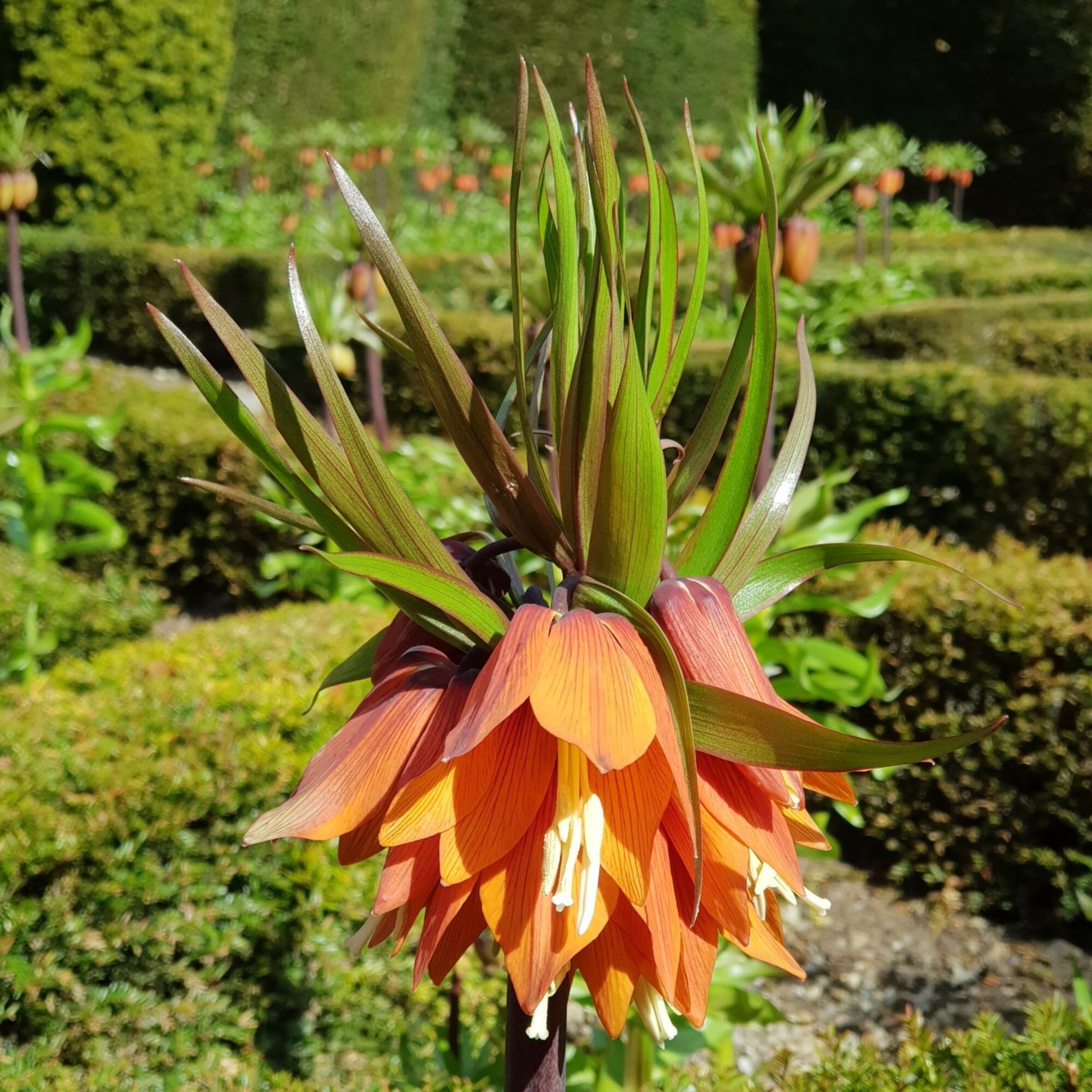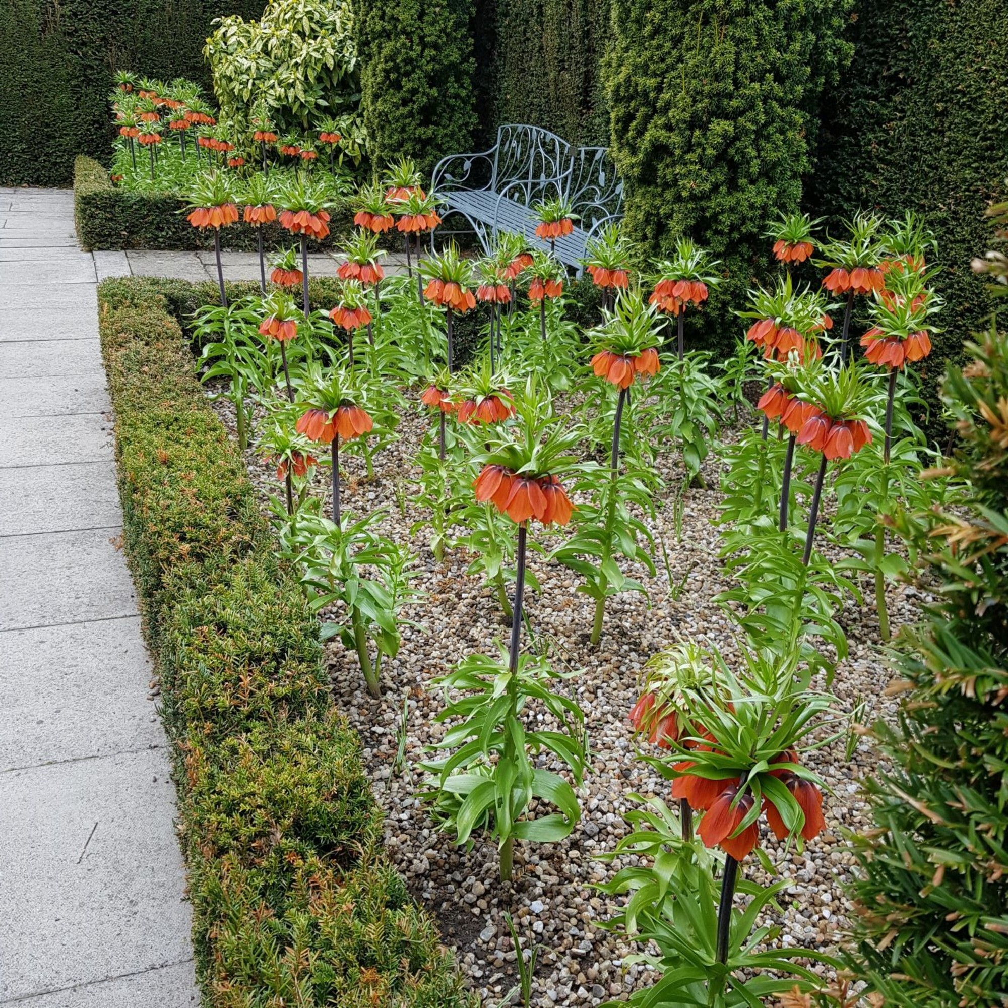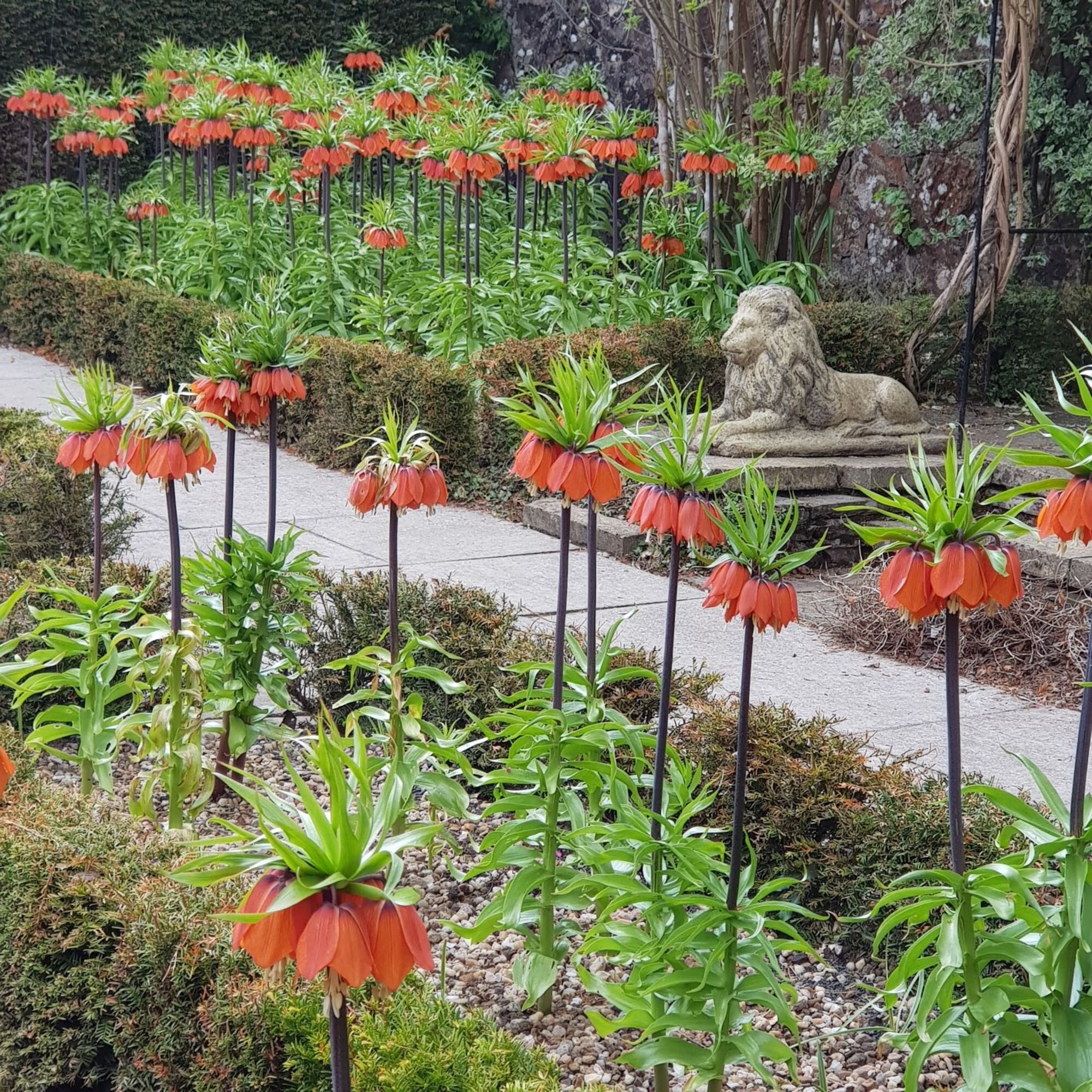 Since the Trust took over Greenbank Garden in 1976, the Friends of Greenbank volunteer group have raised many thousands of pounds, contributing to the purchase of plants, machinery and whatever the garden was needing at a particular time. Sadly, the Friends have recently decided to stop their activities and generously donated money for the replanting of the parterre garden and woodland garden. In the parterre garden we have planted crown imperial fritillaries (Fritillaria Imperialis ‘Rubra Maxima’) for dramatic spring effect, followed by dark blue camassias (Camassia esculenta) later in the summer. These are perennials, so we can look forward to the same flowering display year after year.