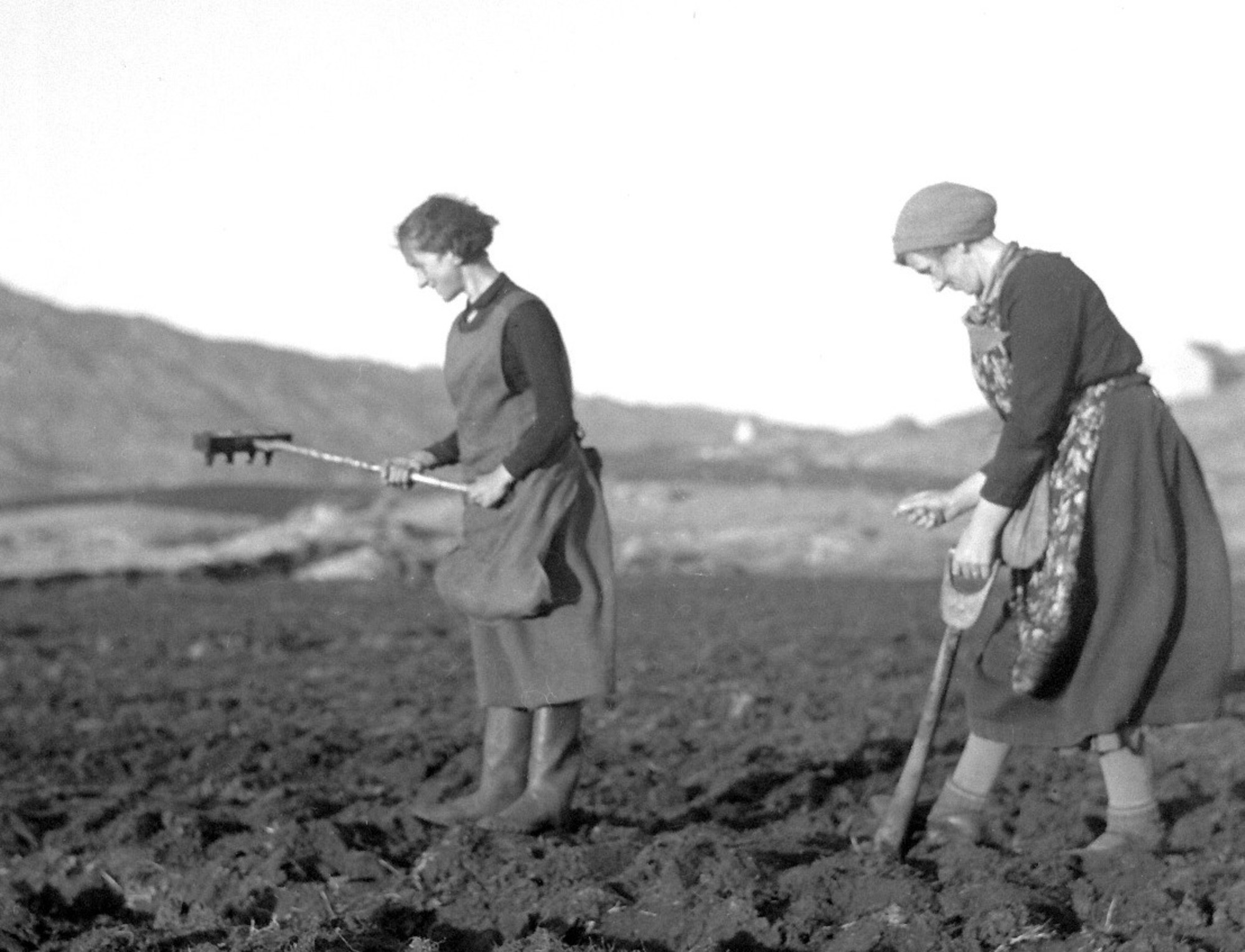 Attitudes towards women varied from island to island in the Hebrides. In the largely Catholic southernmost islands, whilst the man of the house was generally recognised as the breadwinner, it was understood that the household could not function efficiently without women. Their role became even more important during the two world wars, when many of the islands’ men left to join the armed forces. Women, and the older children, had to take up all the activities traditionally undertaken by men as well as their own chores. Margaret herself said that she had ‘never seen both men and women do such hard physical work’.