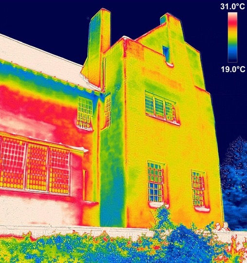 The good news is the Box is doing exactly what it was intended to. Since its completion in 2019, the chainmail protection has been effective in keeping the rain out: the Hill House is beginning to dry out. We learned this with help from Historic Environment Scotland (HES), who undertook thermographic and moisture content surveys. This insight into the health of the building was made possible thanks to funds from Getty.