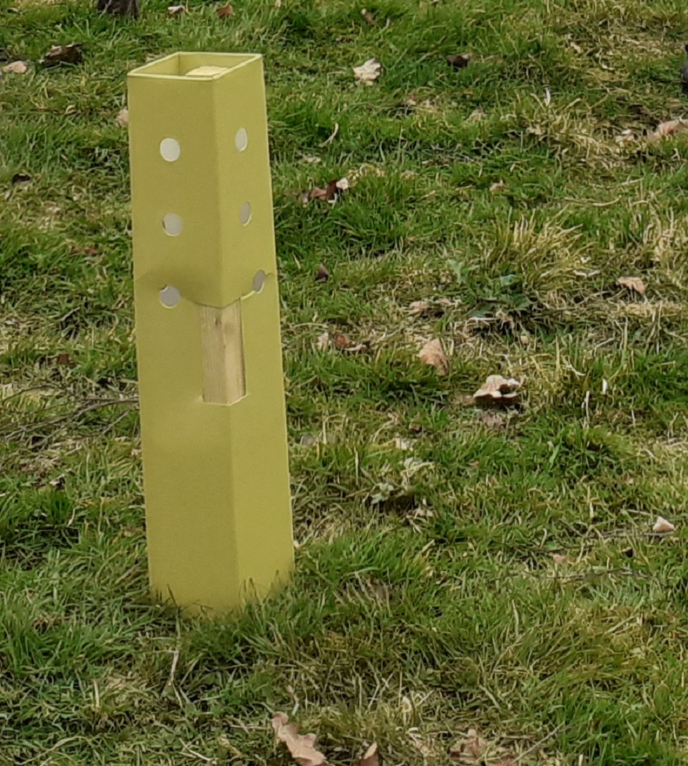 Following advice from Threave Head Gardener, Michael Lawrie, and in line with the Trust’s new strategy, we have chosen to use biodegradable cardboard tree shelters. It will be interesting to see how long they last before we need to replace them, or if the trees establish as the guards break down.