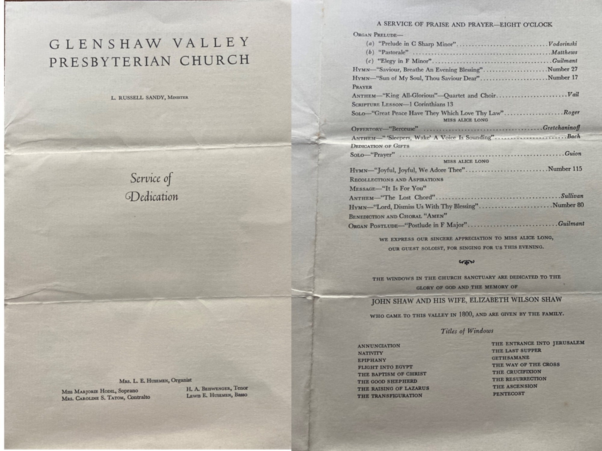 Thomas also built a machine shop near his house on Pine Creek. There he machined sickles from Russian steel for the settlers who were opening up the ‘new land’. The sickles fashioned in the factory became famous and were sold down the rivers on rafts or barges, as far as New Orleans. Margaret was to later recount that the sickles must have been Thomas’s own design as there was never another one of the same design found anywhere in either the USA or Scotland. Known for generations as the Sickle Factory, the building later became the church, or ‘Meeting Room’ as it was called. The Shaw family continued to be closely involved with the succeeding Glenshaw churches from then on. It was even used as a polling place for local and national elections.