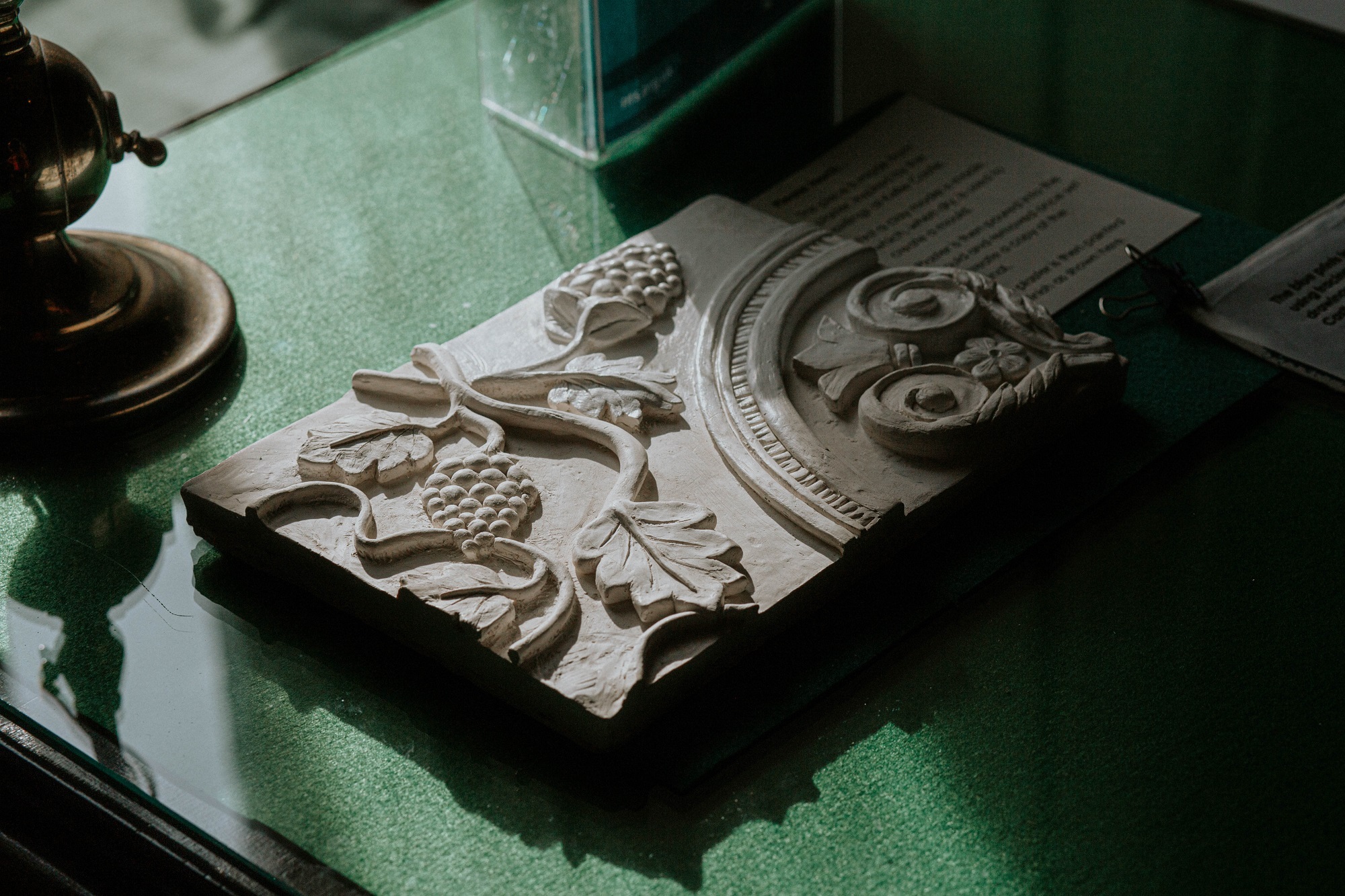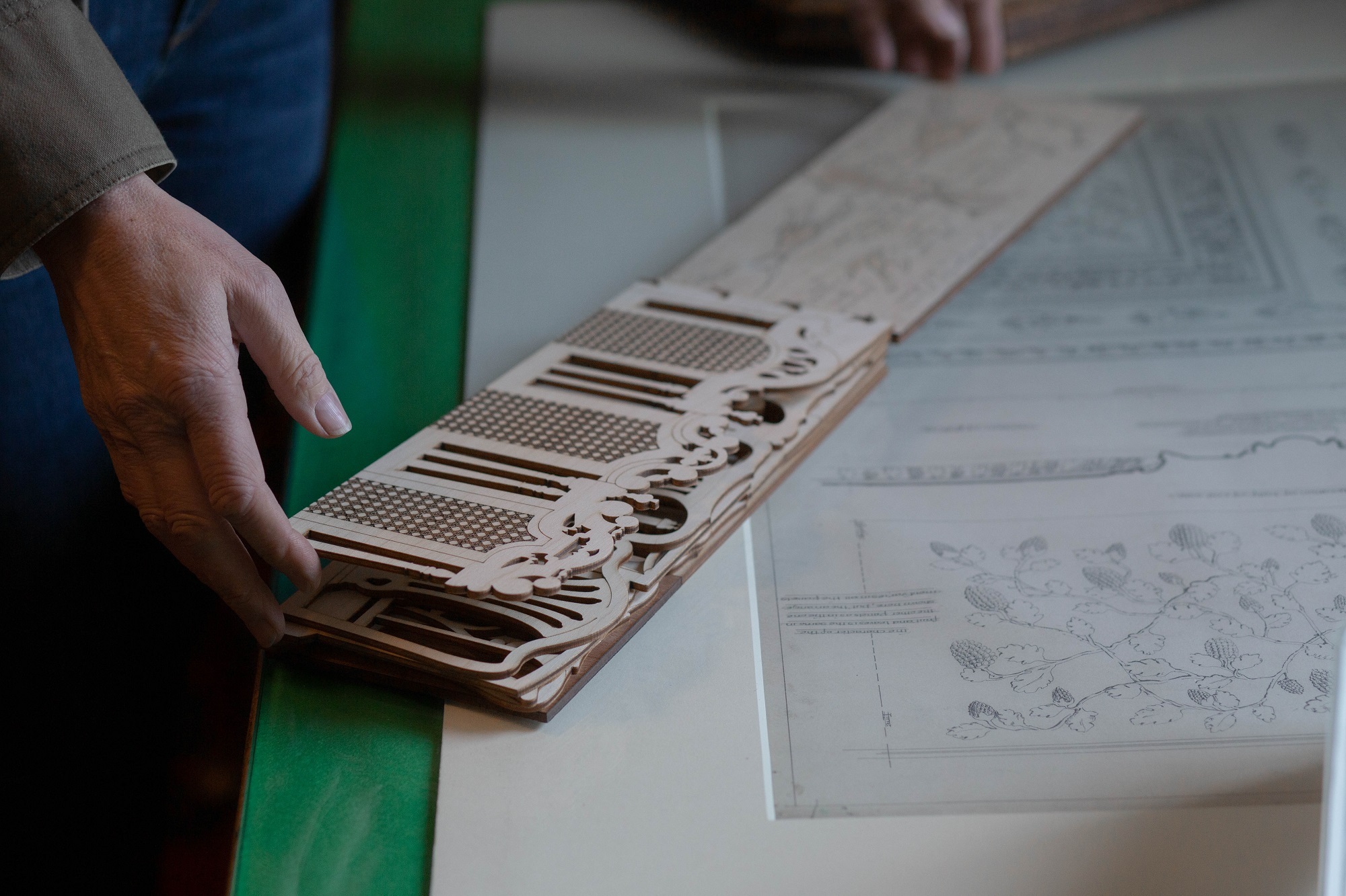 Our third interactive activity involved installing an embossing press. Embossing is a great technique to convey a raised detail, such as a crest or motif from a plaster ceiling, and also gave people a physical reminder of their visit. We used an exhibition embossing press made by Bolsons, a UK-based company that makes bespoke plates and presses specifically for museum environments.