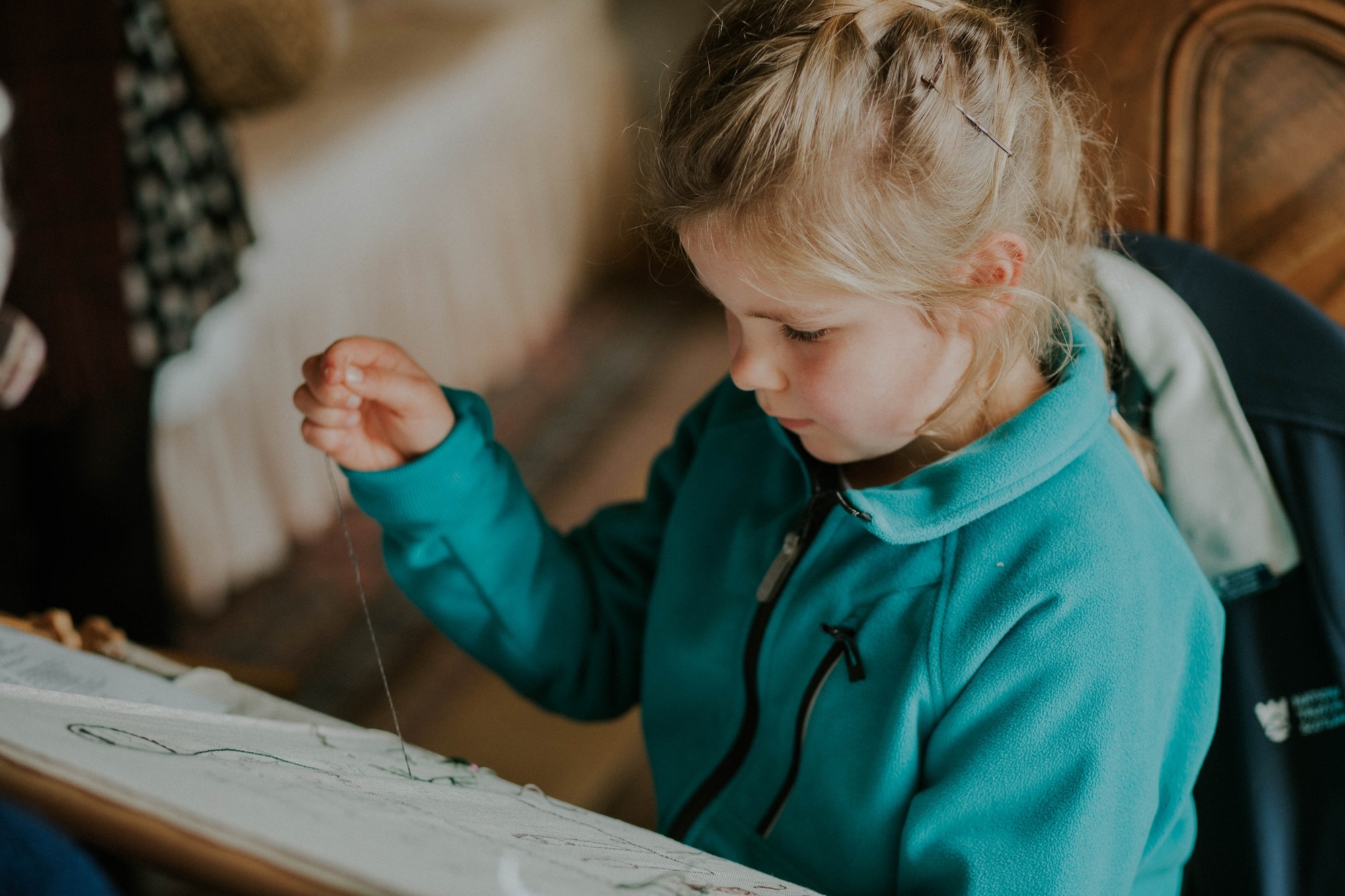 One book focused on marquetry and splat backs on chairs, drawing attention towards Kellie’s bespoke furniture. The second book focused on the plasterwork, helping visitors notice and appreciate the artistry in the carvings above them. The third book focused on the textiles in the house, giving prominence to Mary Lorimer’s tireless post-war efforts to create curtains and bedspreads in rooms throughout the castle. It also drew attention to the samplers on display.