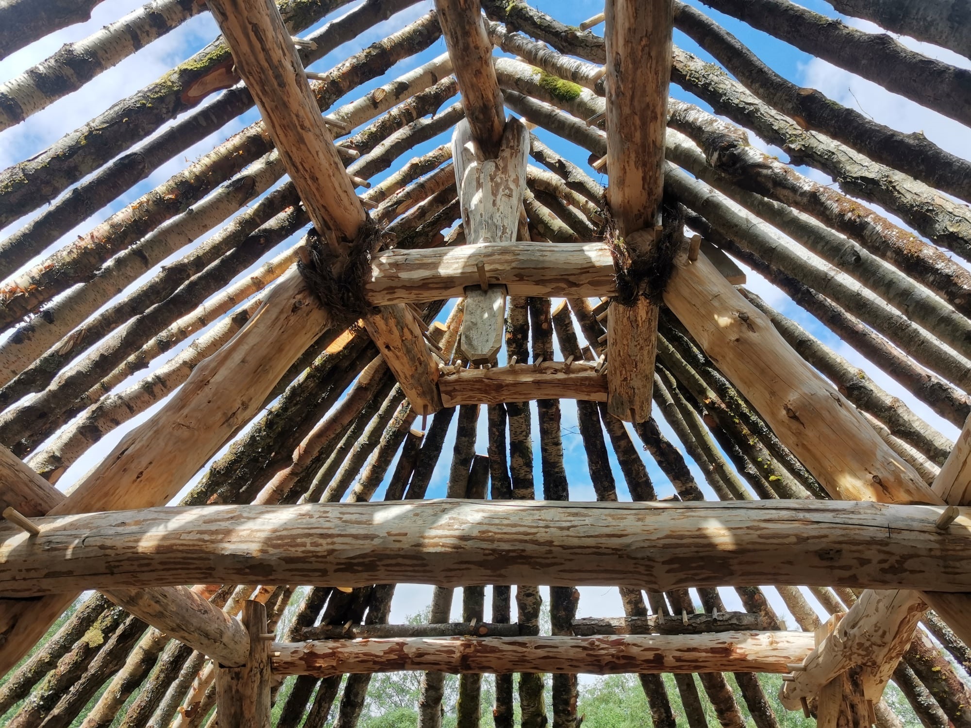 Following shortly behind our green woodworker, our turf builders began cutting and laying chunky turf blocks to construct the 80cm-thick exterior walls. These blocks are laid in an intricate herringbone pattern to offer maximum strength and stability.