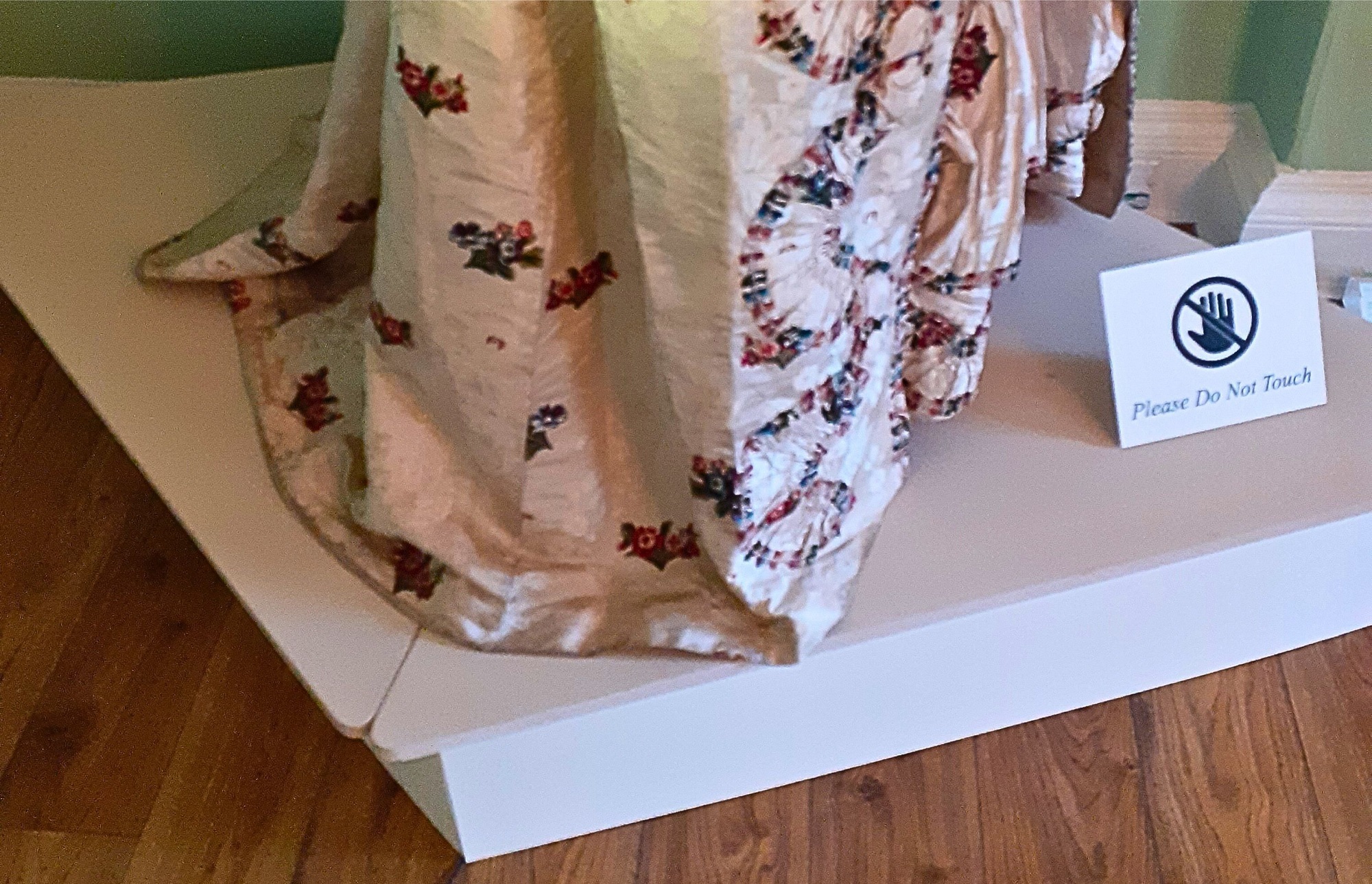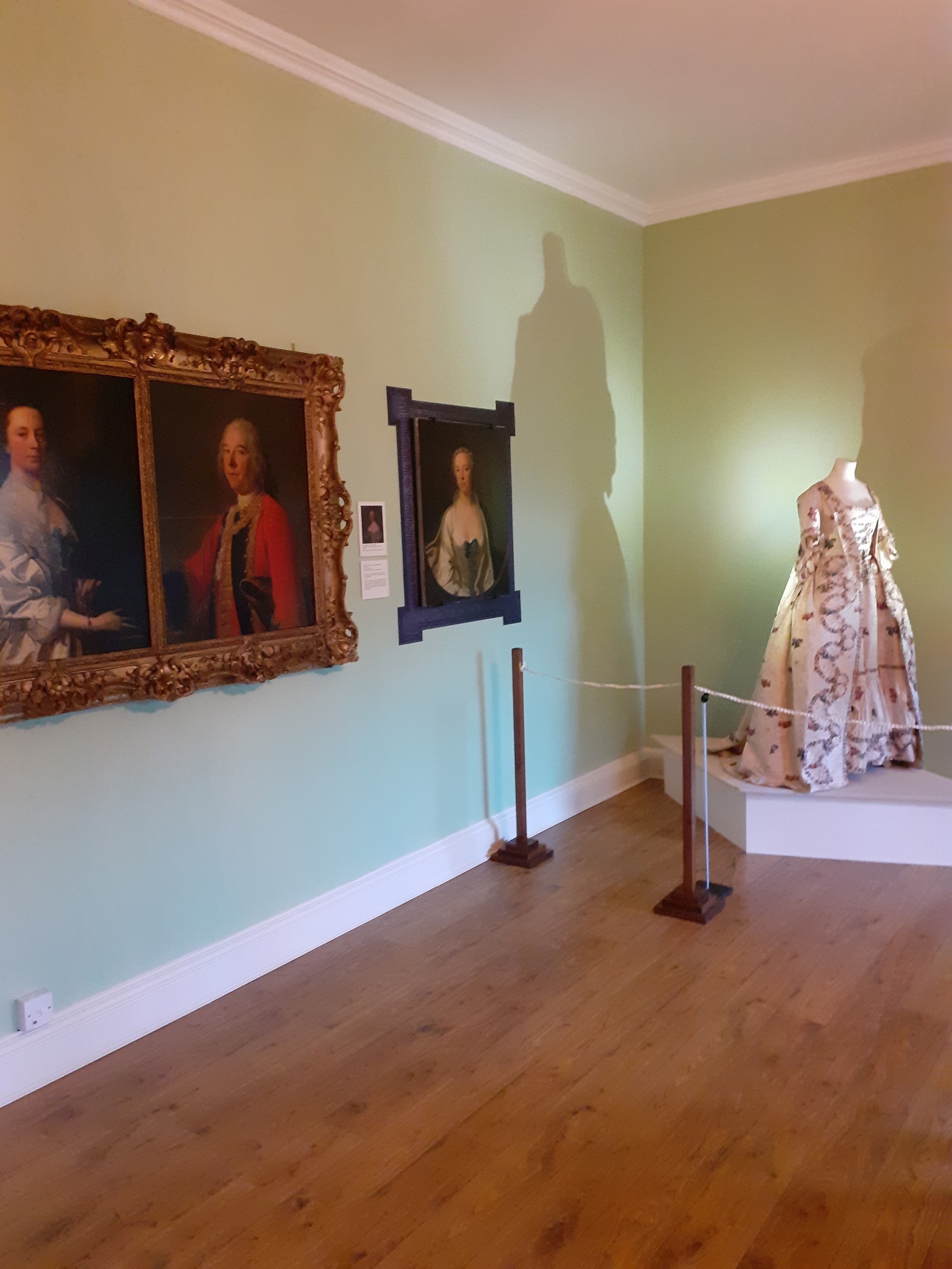 Another protective measure is the metre-wide space between the stanchions and the dress. It is generally agreed that dust generated by the movement of visitors is less likely to reach an object from that distance. Dust covers can also be used to prevent excess dust from settling on the object during the times when staff and visitors are not in the building.