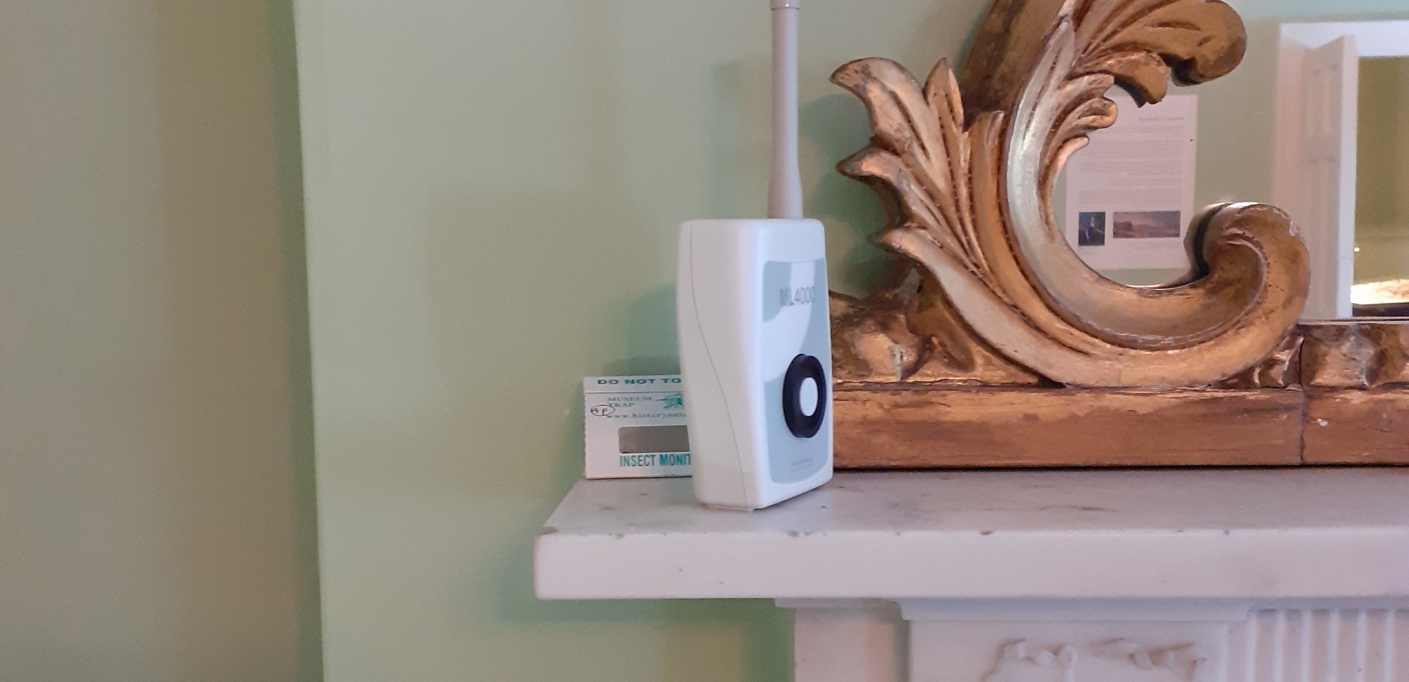 Outside of a case, in a larger space in a non-airtight historic building with visitors moving through, the environment surrounding the dress is far more prone to changes in humidity, and the ambient conditions are more difficult to control. However, the room is continually monitored, and the dress is positioned away from localised areas of extreme temperature and RH, such as windows, radiators and external walls. There is space all around it for air to circulate.