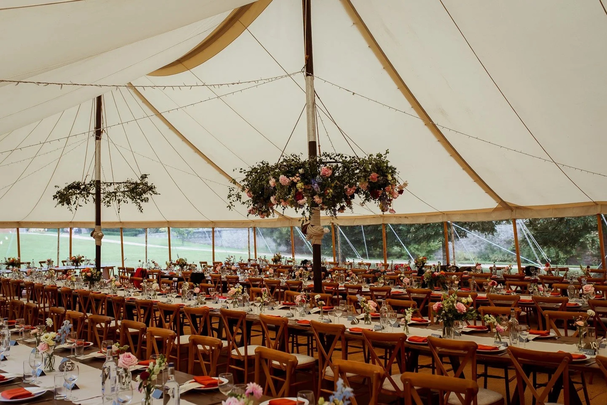 After a tour of the grounds (with the ’incredibly knowledgeable’ events manager David), Eve and Shona knew they wanted to make the most of the walled garden. Eve comments: ’It’s so lovely, and we wanted the opportunity for our guests to be outside – weather permitting. The team were able to accommodate a marquee on the lawn.’
