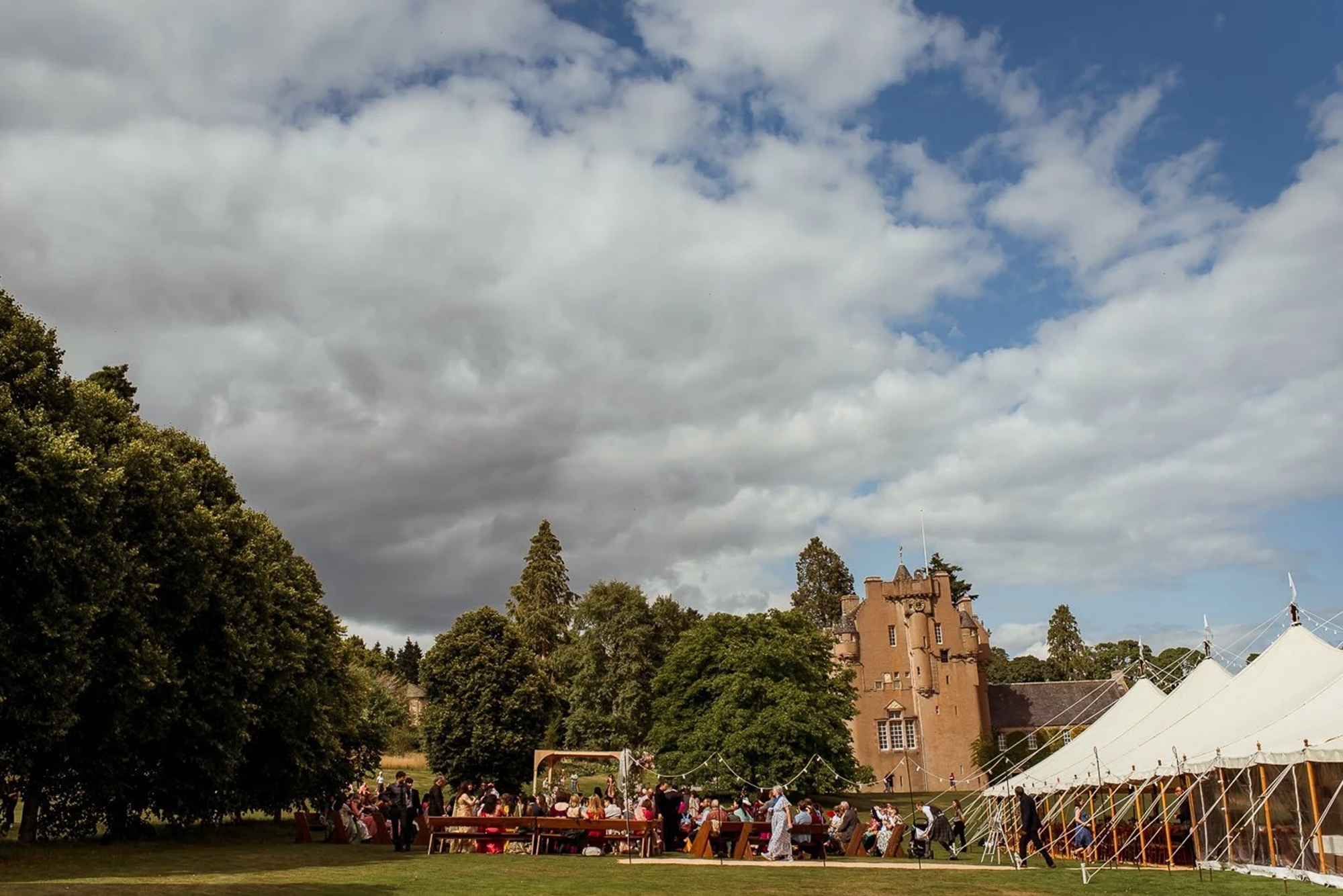 Outdoor Scottish-Hindu wedding at Crathes Castle
