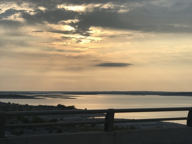 So, over here, behind Mary who’s at the other end of the camera, is the Gila River, the (inaudible) River and the Colorado River, all flowing into the Pacific. And this way, looking to my right, we’re looking down to the Rio Grande river basin and of course that flows down to El Paso, where we are going next, and then into the Atlantic. So huge, huge milestone this and we’re very excited. We’ve had an exciting trip so far – it’s all on my blog.