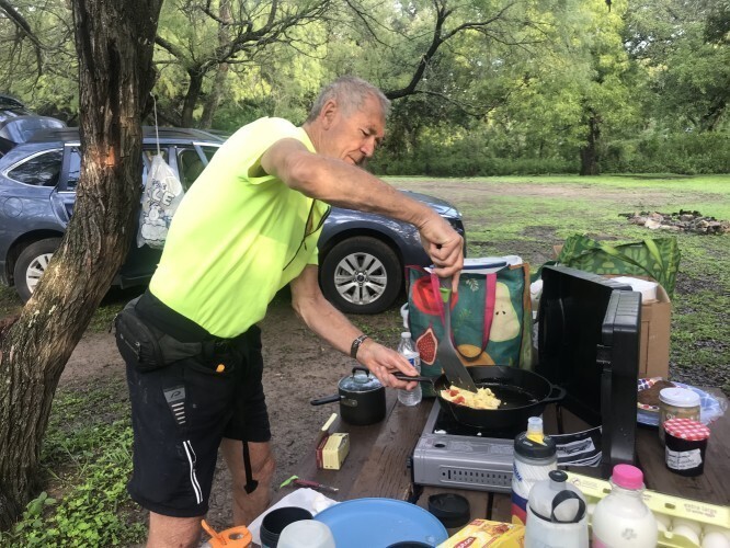 The next day, en route to Comstock, George and Mary encounter a few surprises, some welcome and some less so. First up – the hills. While this stretch looked to be downhill on the map, it was much more ‘undulating’ than a steady decline. On the positive front, the discovery of a museum at Langtry provided a comfortable lunch stop before George completed another challenging stretch of hilly terrain to the best burger they’ve ever had (Mary’s review) and a night under canvas.