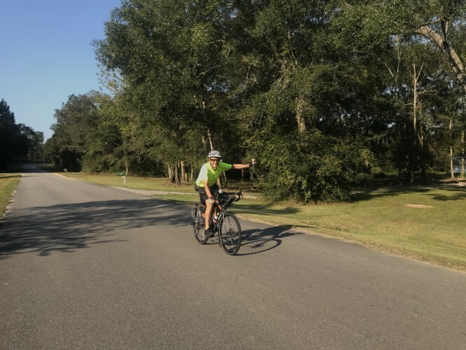 Day 40 was a bit more of a challenge, with another flat tyre to repair at the outset, and then stiff winds, canine encounters and hills combining to make arrival in Bogalusa a big relief (and achievement).