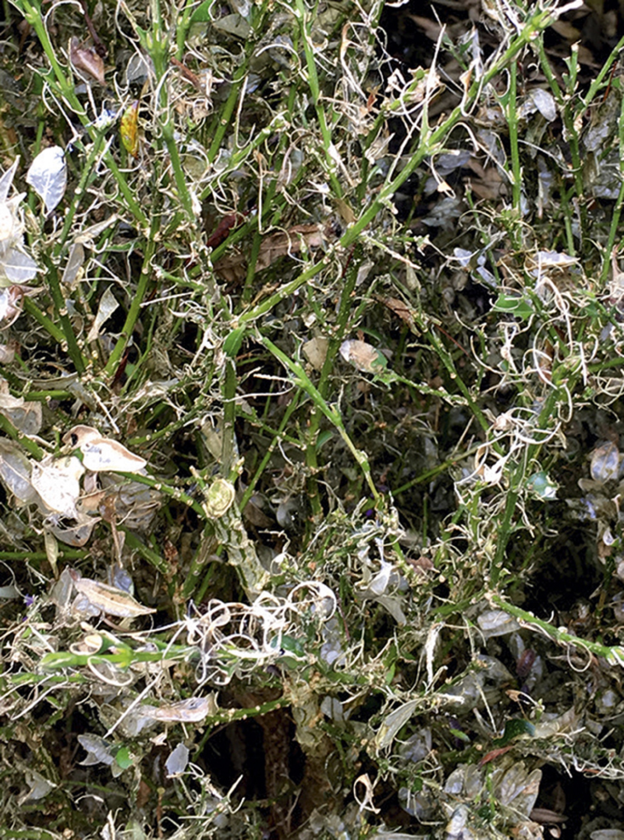 Recently, whilst replacing a small section of box hedge that was failing, Pitmedden’s Head Gardener Scott Smith took the below photo of the root system of the plants. He was shocked. The build-up of copper residues (one of the active ingredients in the antifungal sprays) was clear to see in and around the base of the plants. This photograph begs the question: what are we doing to the soil if this is what’s left?