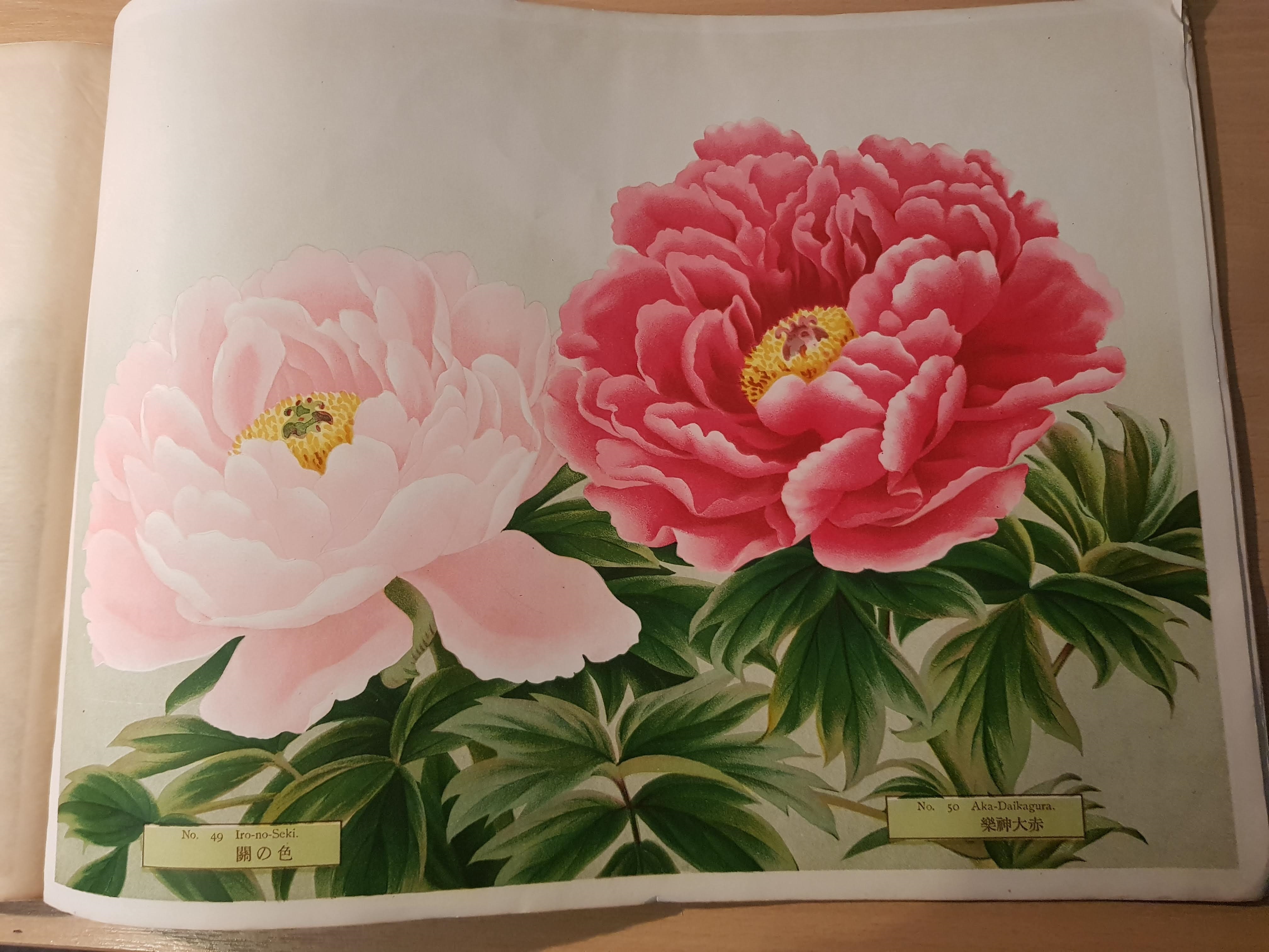 The celebration of peonies has a long history in China, dating back to the Tang dynasty (618–907). They were introduced to European audiences through Chinese wallpapers. Peonies started appearing in gardens in the 19th century when they were brought to Europe from Japan and China. The tree peony Paeonia suffruticosa, also known as P. moutan in China, was found in Hornel's garden, and the Yokohama Nursery catalogue he acquired featured the different varieties of tree peony available from the Nursery. The garden at Broughton now showcases various peony varieties, such as P. lactiflora, the Chinese herbaceous peony.