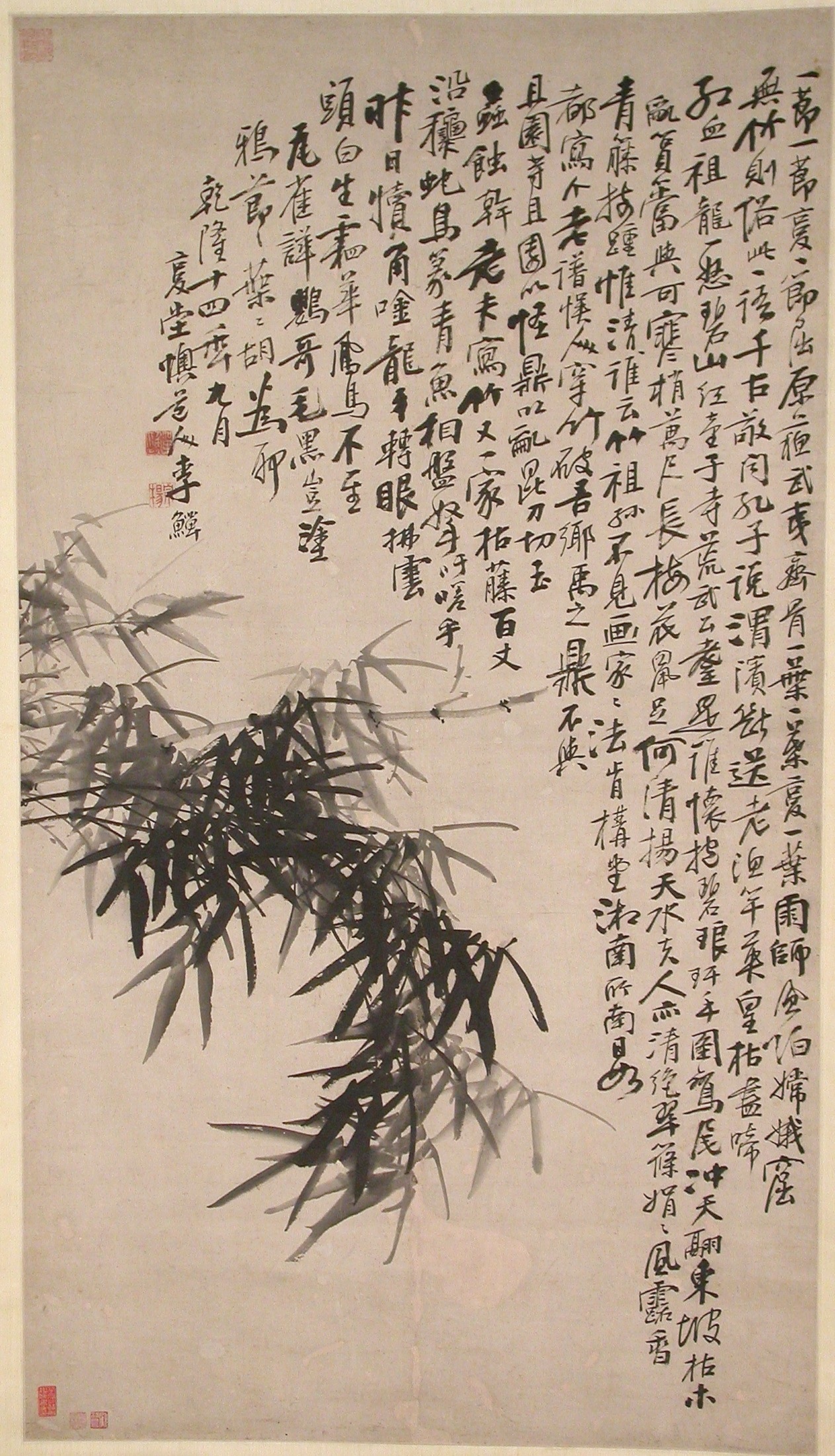 Scholar painters (also called literati painters in English literature) in China favoured bamboo and plum as the subject matter for monochrome painting, using just black ink. Particularly with bamboo painting, there were many affinities in brushwork techniques with calligraphy, the favoured expression of the scholar painters. They also appreciated objects made from bamboo for scholars’ desks, such as brush holders and wrist rests.