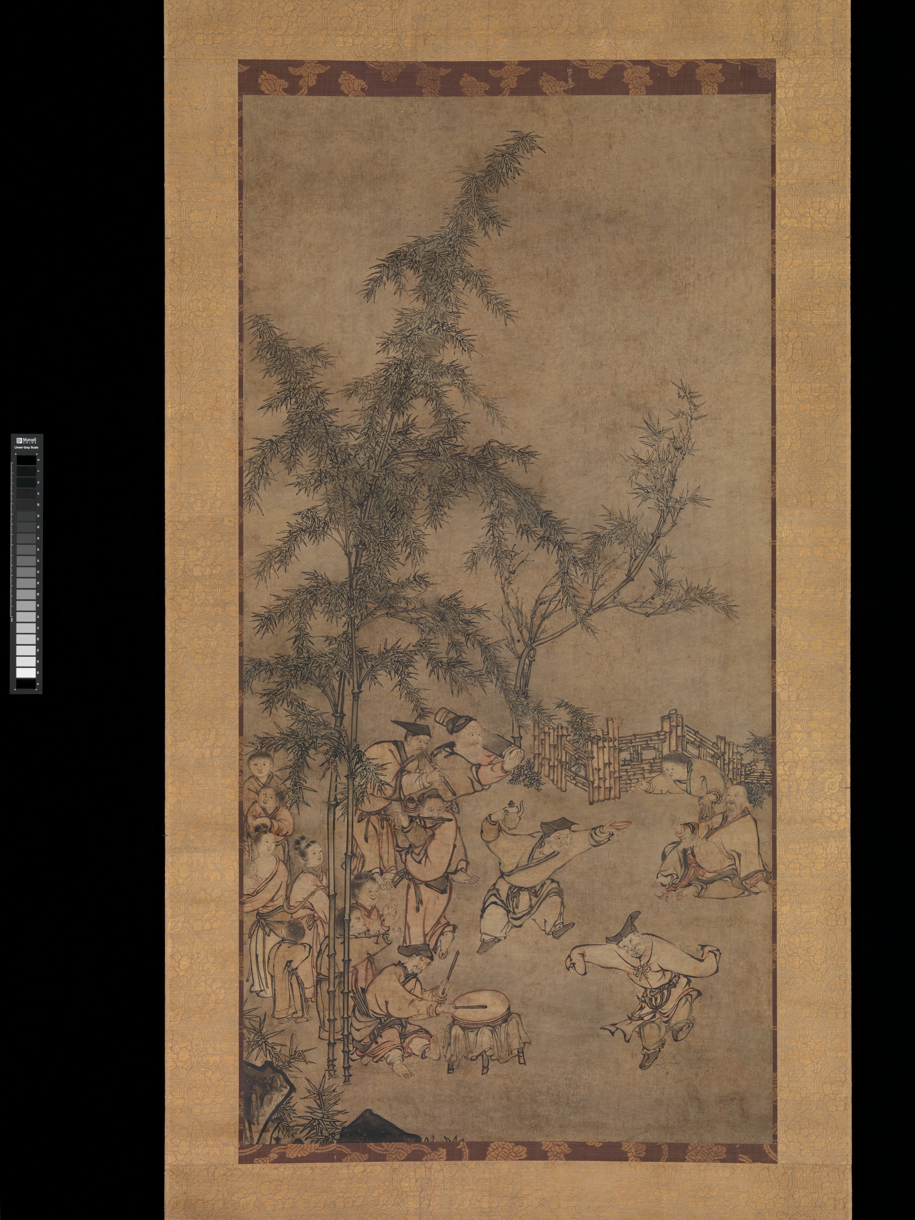According to traditional lore, bamboo groves were gathering places of the sages and later of poets, scholars and recluses. The most popular visualisation of this theme throughout East Asia is The Seven Sages of the Bamboo Grove, based on a story according to which seven poets and scholars retired to a bamboo grove near the capital during the unstable early years of the Western Jin dynasty (265–317). There, they could indulge in reciting poetry, playing music and drinking wine, in order to avoid the dangers of a career as a Confucian official.