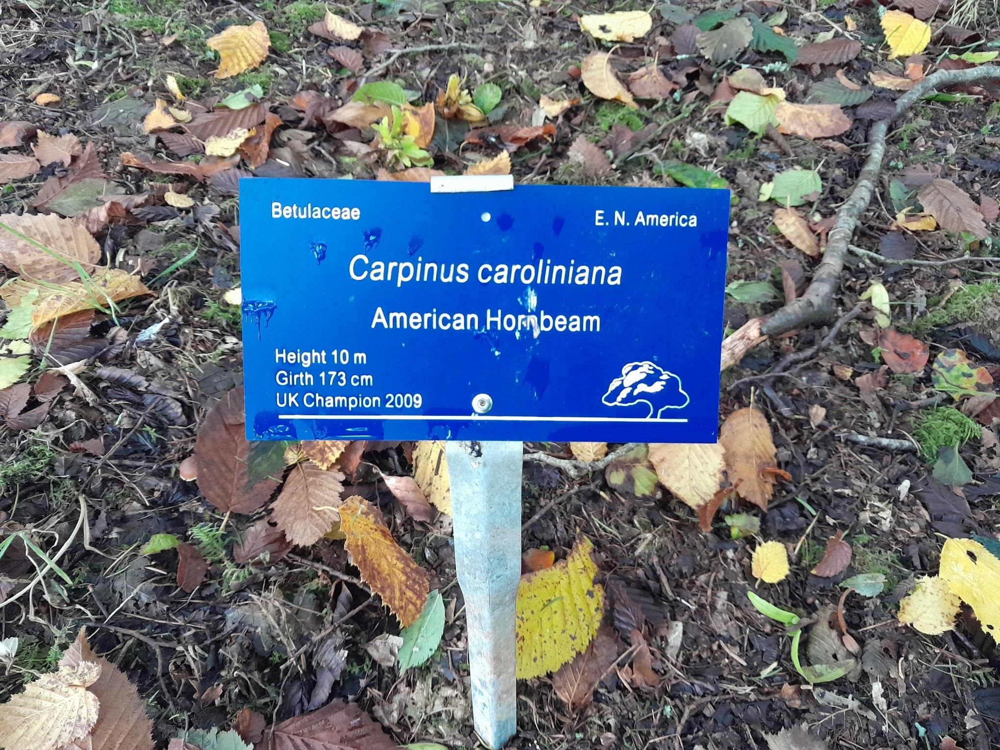 While some champions have been more challenging to locate, sometimes growing amongst other large trees, others are in plain view, such as the Cryptomeria japonica (Japanese cedar or Sugi) planted in the walled garden at Culzean Castle in 1876. This is a county champion due to its girth of 553cm. At Threave, champion trees have a blue label, making them easy to spot, such as the Carpinus caroliniana (American hornbeam) in the south-west corner of the garden; it is a Britain and Ireland champion for both its height of 12m and girth of 223cm.