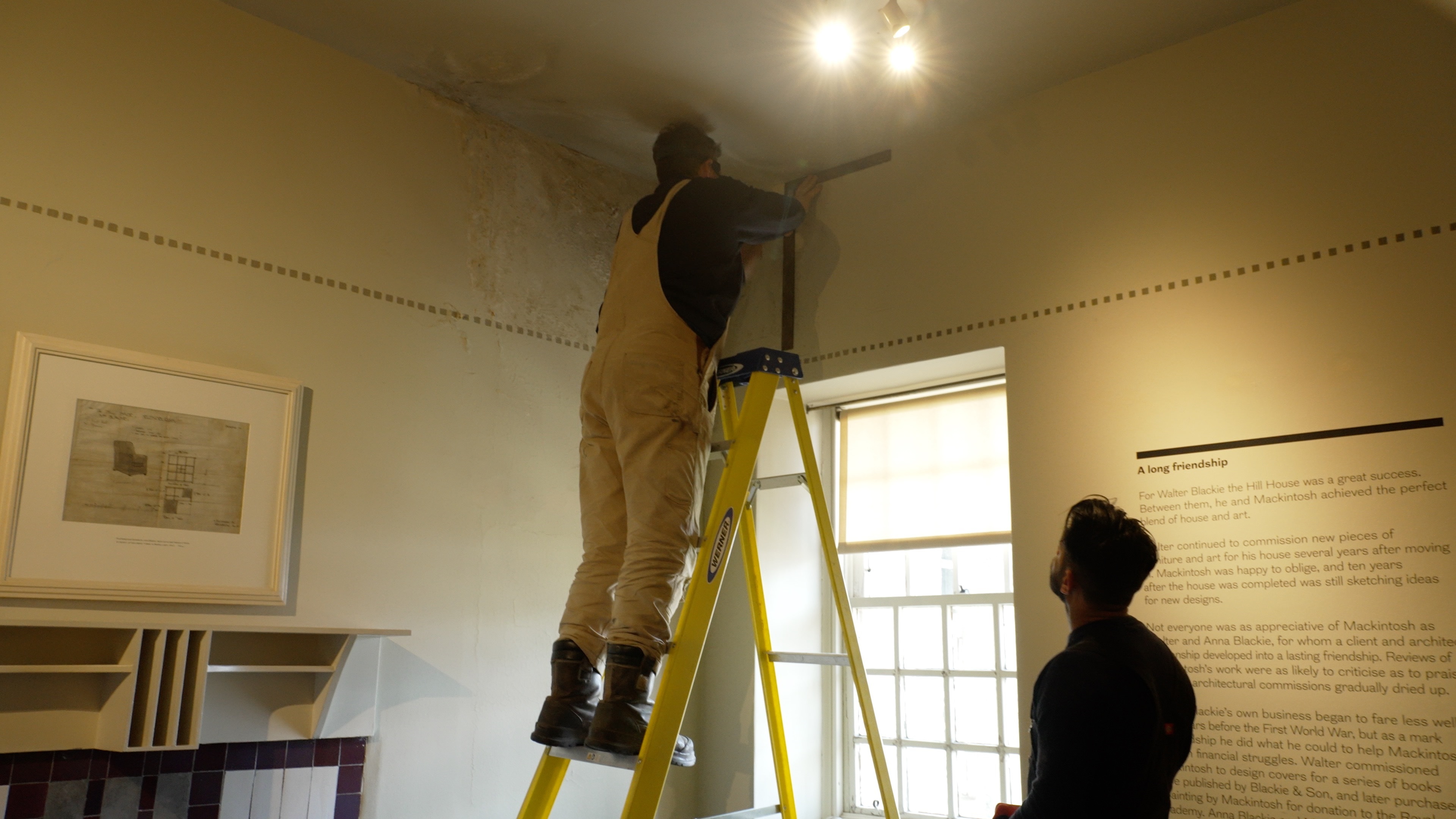 Now, a series of samples are being taken from key internal points in the house that have been badly affected by water ingress — the living room, dining room, drawing room, guest bedroom, wine room and larder. These will provide conservators with more information about how the building has been affected by water and if there was any inherent defect in either the materials used originally or the manner in which they were used in the construction. This will help inform future decisions about the conservation works needed to repair and restore the building, which is now one of the few remaining Mackintosh creations that is open to the public.