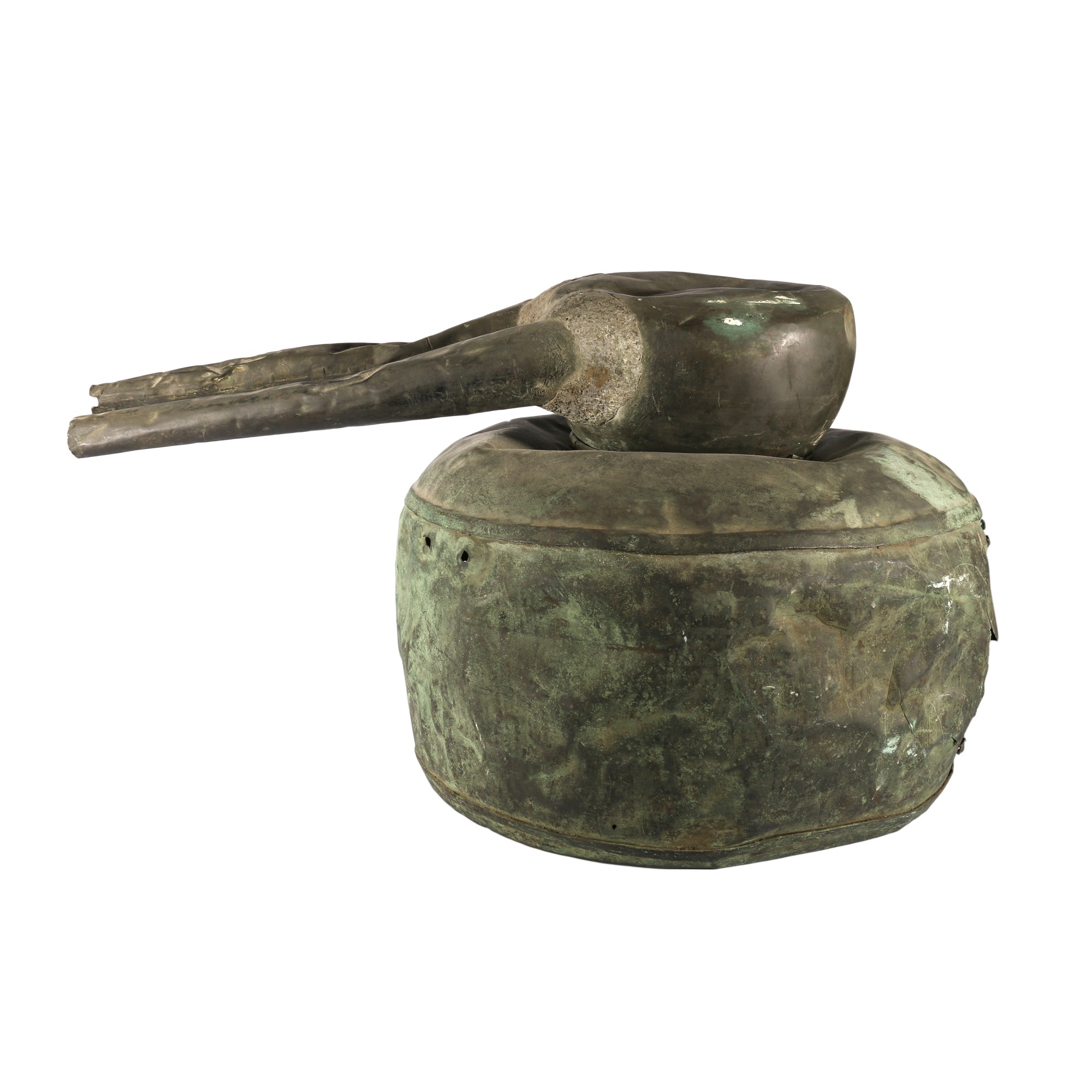 This 3.5-gallon copper still, with its single lyne arm, is certainly illicit in nature as it was made in the early to mid-19th century. It is unique in that the maker, namely a John McEuen Gray, an ironmonger based in Perth, had embellished the pot with an oval brass plaque with his name and business address on it! He was based at 7 George Street from 1828 until his death in 1869/70. The still has been drilled in several places, which is consistent with it having been ‘made legal’ for owning or indeed selling. The Perthshire Courier from February 1870 advertises the sale of former Perth town councillor John McEuen Gray’s chattels by public roup, conducted by Auctioneer Duncan MacFarlane on 15 February 1870. Perhaps this still was part of the estate and sold in that auction some 150 years ago.