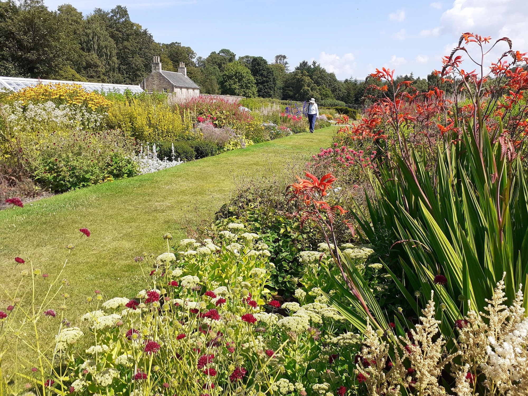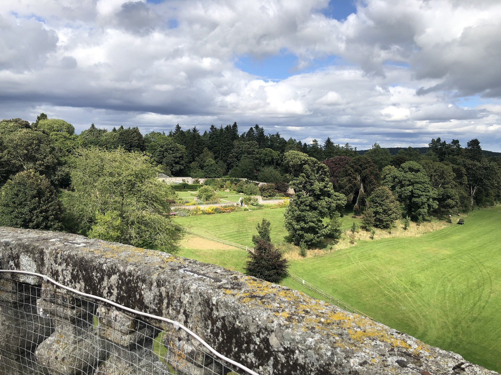 One of the gardens I have enjoyed the most is the one at Castle Fraser. This castle, situated in Aberdeenshire near the village of Kemnay, has its origins in the 15th century and is one of the largest tower houses in Scotland. Its estate comprises spacious parklands, diverse woodlands and a historic walled garden, which was remodelled in the early 2000s and now features specimen trees, herbaceous borders, and a rich variety of fruits and vegetables.