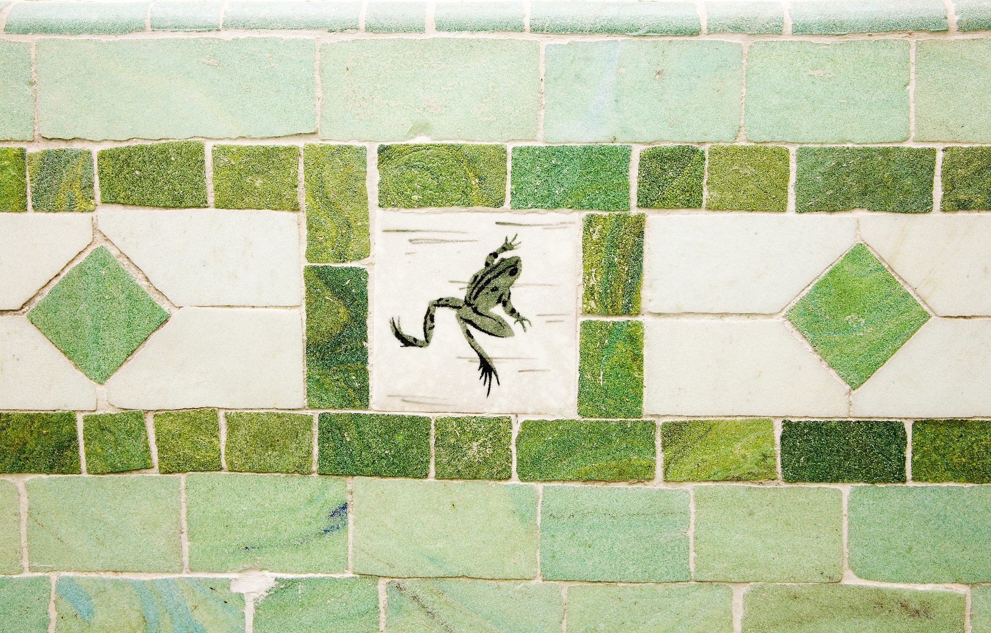Our Playful Garden toad was inspired by the pets kept by Violet Brodie, Ninian’s mother. Violet was especially known for keeping unusual pets such as toads and she gave them names such as Grandma Volumina, Leo and Cleopatra! She was a keen herpetologist (someone who keeps amphibians and reptiles) and was responsible for the decoration of one of the bathrooms in the Laird’s Wing, which has tiles depicting leaping frogs and toads.