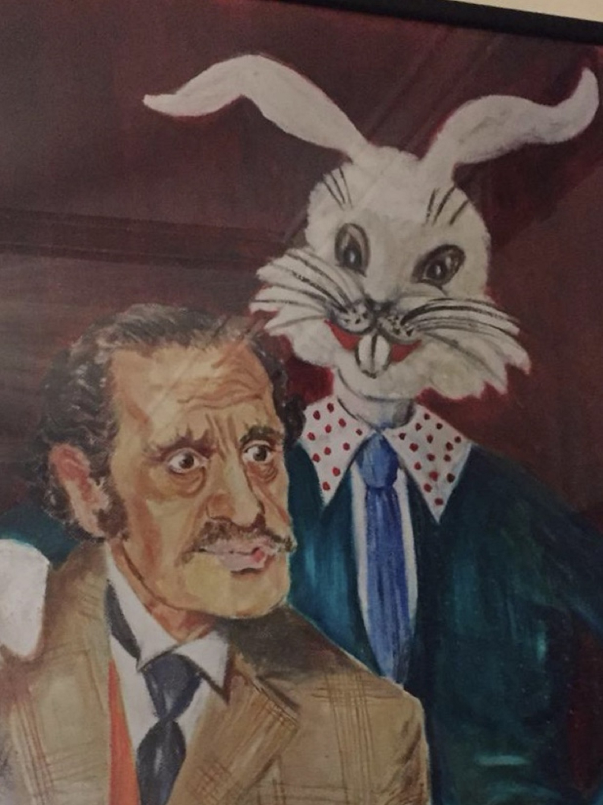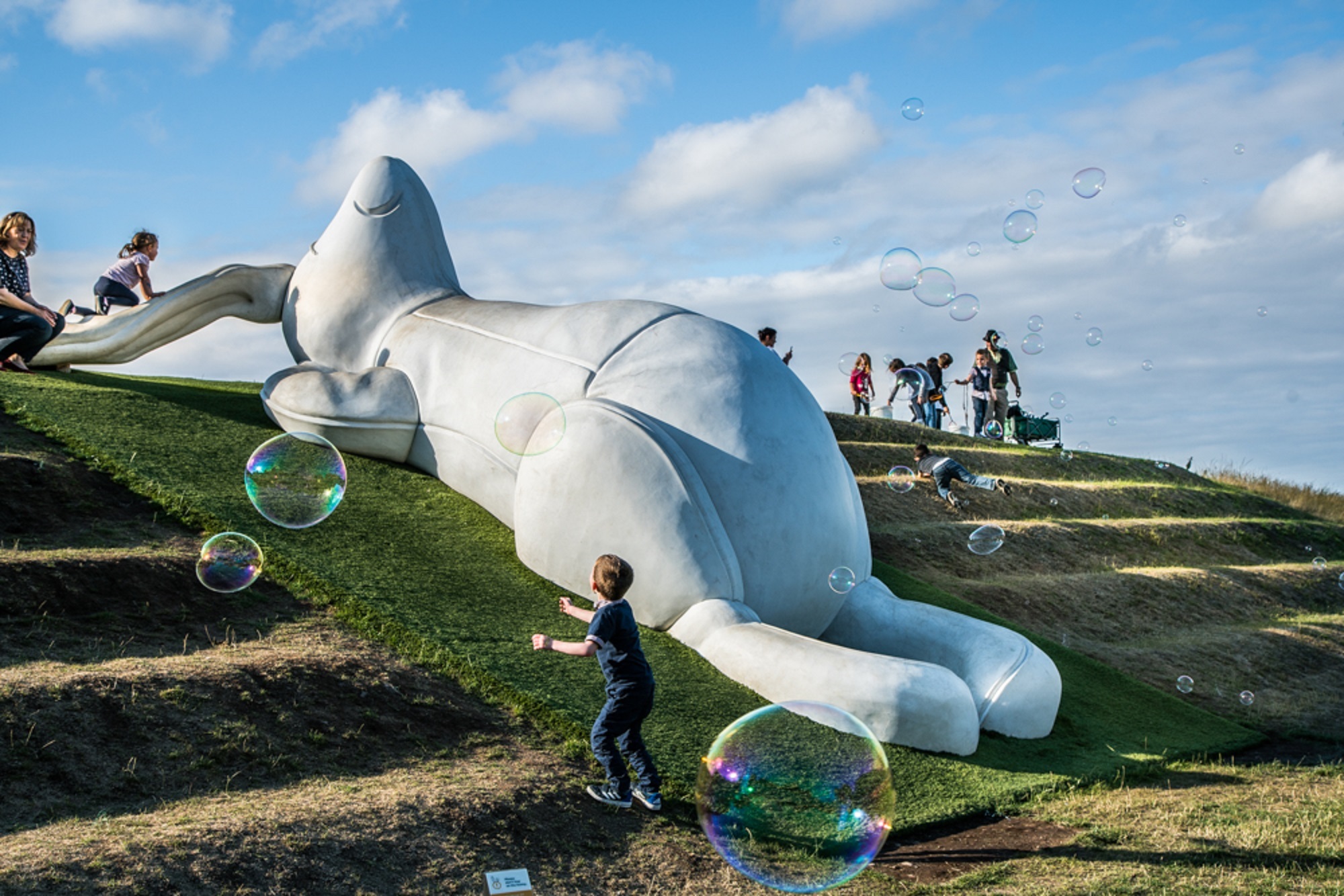 Children love Brodie the Bunny! Come and meet our 6.5m sculpture made of white marble jesmonite, relaxing above the Playful Garden. Brodie the Bunny is inspired by Ninian Brodie’s acting career, in which he performed in the stage play Harvey. The main character in this play claims to have an imaginary friend who takes the shape of a 6ft white rabbit. A painting of the two of them hangs at the bottom of the main stairs in the castle.